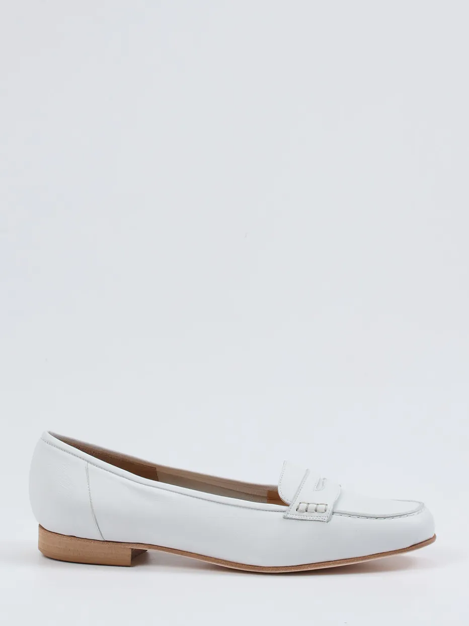 Dieser Damen-Loafer aus weißem Lammleder kombiniert klassische Silhouette mit moderner Reduktion. Hochwertige Verarbeitung und dezente Details unterstreichen den stilvollen Minimalismus.