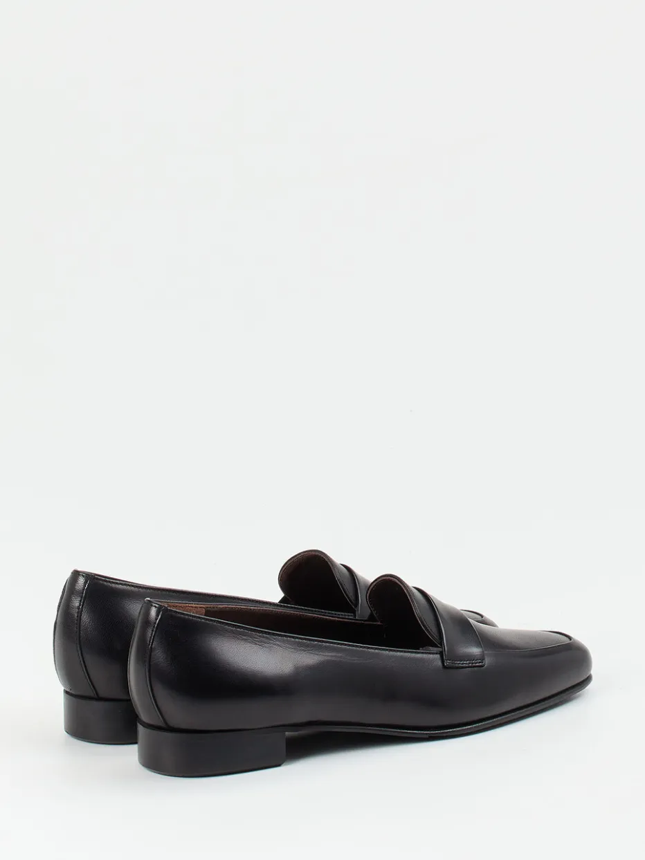 Die hochwertige Verarbeitung aus tiefschwarzem Lammleder und die klassische Silhouette machen diesen Damen-Loafer zu einem zeitlosen Begleiter für moderne Business-Outfits.