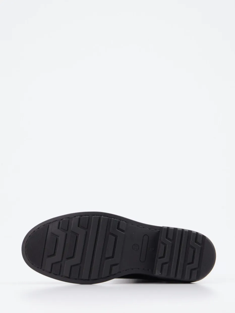 Minimalistischer Klassiker in urbaner Neuinterpretation.Marc O’Polo präsentiert diese Damen-Stiefelette im klassischen Chelsea-Stil. Ideal für Tage, an denen zuverlässiger Komfort auf geschmackvolle Zurückhaltung treffen soll: Das schwarze Lammleder besitzt ein leicht glänzendes Finish und bringt die geradlinige Form gekonnt zur Geltung. Ton-in-Ton-Nähte, ein dezentes Logo an der Ferse sowie elastische Einsätze und eine praktische Zuglasche betonen den puristischen Charakter. Die profilierte Gummisohle wirkt robust und harmoniert mit dem aktuellen „Heavy Sole“-Trend. Optimal für Alltags- und Bürooutfits im minimalistischen Stil. Ein femininer Allrounder mit klarer Formsprache und hoher Alltagstauglichkeit.