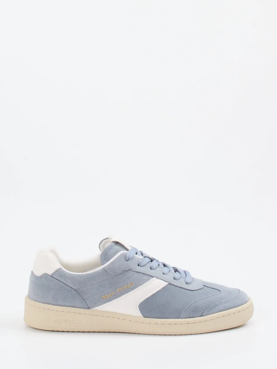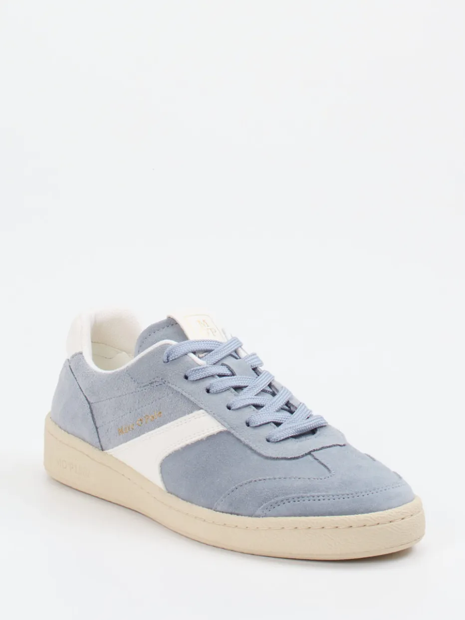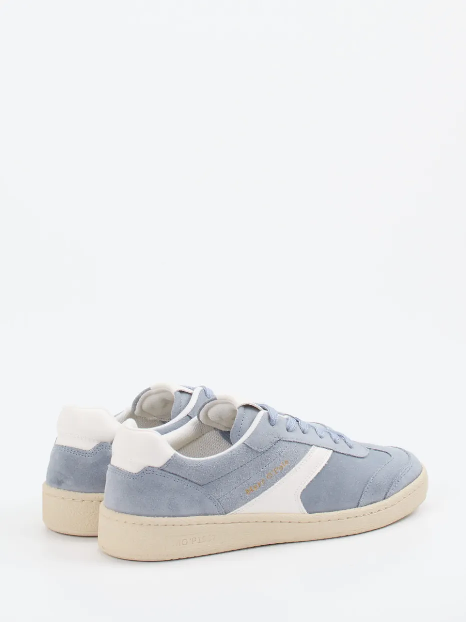 Pastellfarbener Retro-Charme für den Alltag.Der Sneaker von Marc O’Polo verbindet sportliche Eleganz mit aktuellen Pastelltrends. Ideal bei ausgedehnten Spaziergängen oder urbanen Erledigungen überzeugt das Modell durch taubenblaues Veloursleder – samtig angeschliffen – ergänzt durch Kalblederdetails in Offwhite. Die klassische, flache Silhouette wird durch eine profilierte Gummisohle akzentuiert, verstärkte Ferse und goldener Logodruck betonen die dezente Retro-Ästhetik. Atmungsaktives Textilfutter, Memory-Foam-Fußbett und Eignung für Einlagen sorgen für hervorragenden Komfort. Ein vielseitiger Begleiter für casual-inspirierte Styles. Marc O’Polo steht für hochwertige Verarbeitung im zeitlosen Designanspruch.
