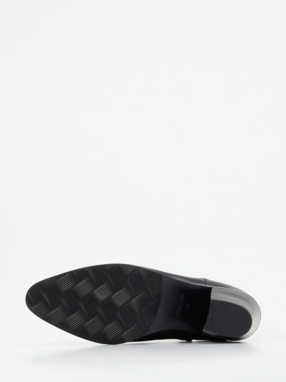 Minimalismus trifft Lederklassiker.Maripé präsentiert mit dieser Chelsea-Stiefelette ein Damenmodell für puristische Looks mit Eleganz. Im Büro, auf Reisen oder beim Stadtbummel überzeugt der Schuh mit schwarzem, glänzendem Kalbleder und klassischer, taillierter Silhouette. Elastikeinsätze in Ton-in-Ton und praktische Zuglaschen sorgen für Komfort und Alltagstauglichkeit. Der stabile Blockabsatz mit 5,5 cm Laufhöhe rundet das Design stimmig ab. Passend zum „Quiet Luxury“-Trend passt sich das Modell sowohl Business-Outfits als auch minimalistischen Herbststyles an. Typisch Maripé: fein gearbeitete Details und feminine Linienführung für stilvolle Vielseitigkeit.