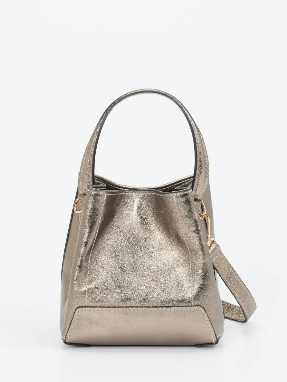 Damen Marlon Firenze – Mini-Bucket-Bag aus Leder metallic