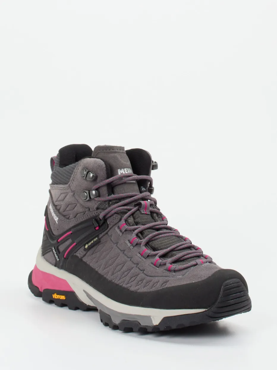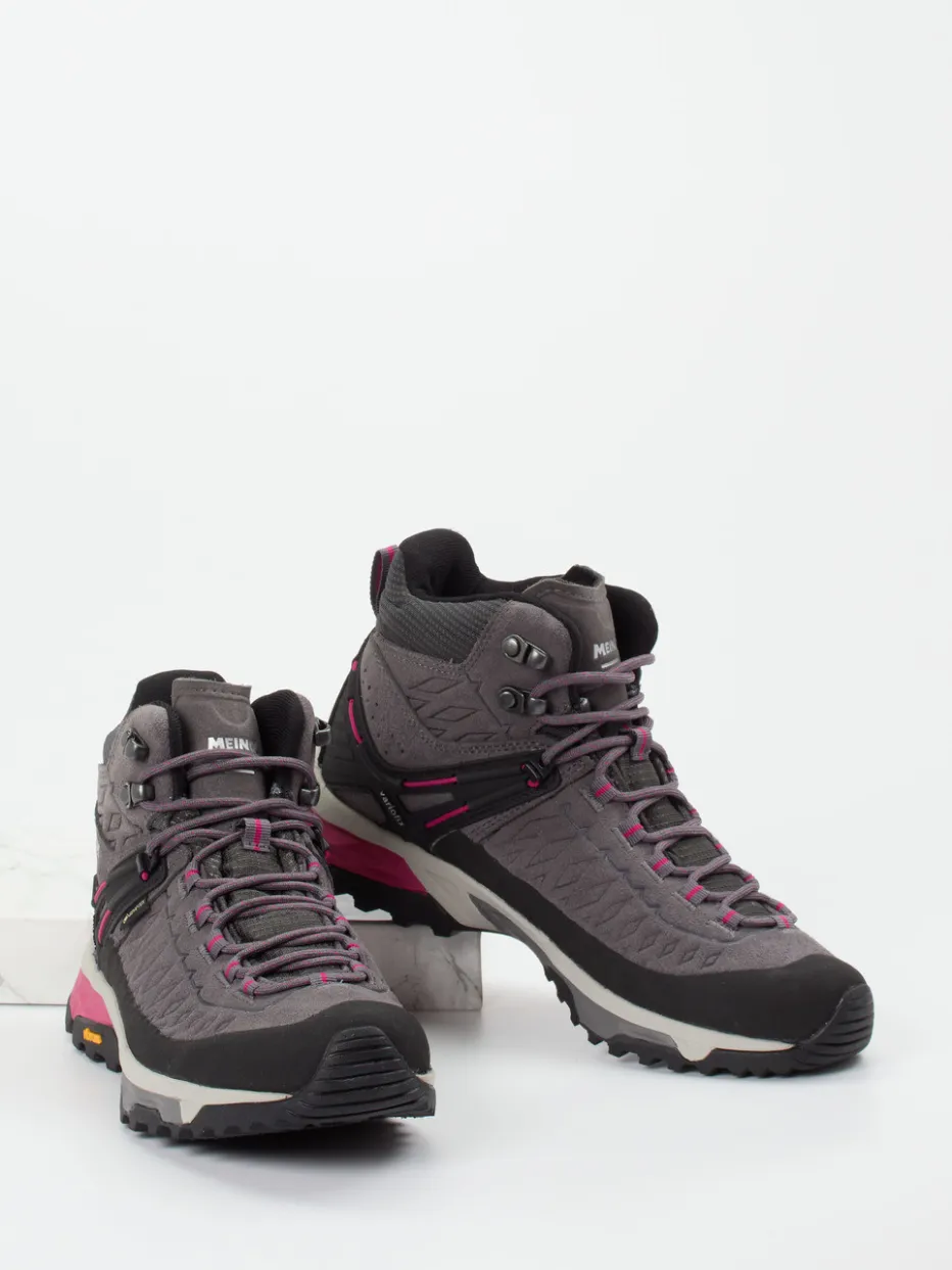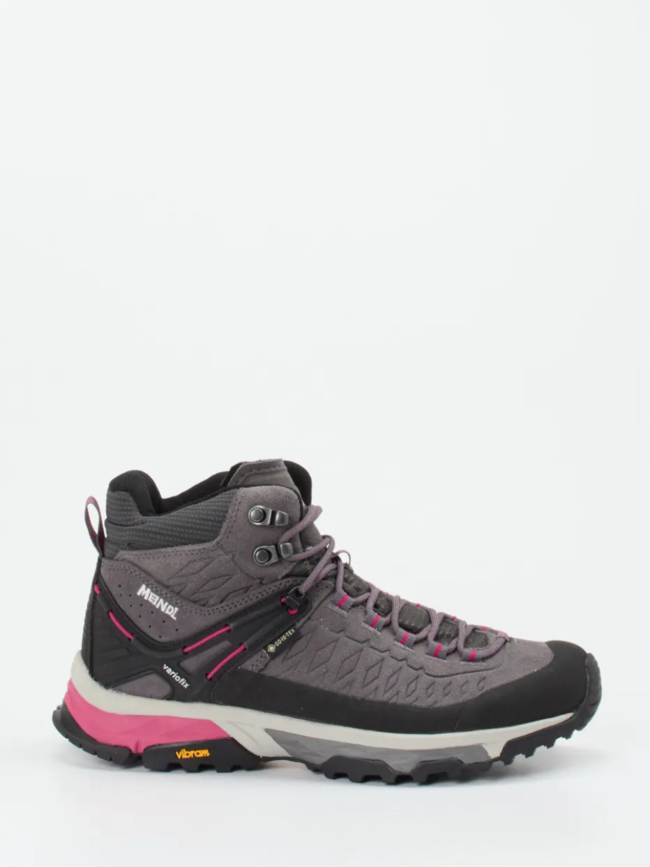 Bereit für jede Wetterlage.Meindl präsentiert einen technischen Wanderschuh für Damen, der Komfort und Schutz kombiniert. Ideal für anspruchsvolle Wanderungen in jedem Terrain unterstützt das wind- und wasserdichte Obermaterial mit GORE-TEX-Membran auch bei wechselhaftem Wetter. Die funktional-sportliche, knöchelhohe Passform in Anthrazitgrau wird durch pinkfarbene Akzente und eine strukturierte Oberfläche aufgelockert. Hakenösen, robuste Schnürung und eine Vibram-Gummisohle mit starkem Profil sorgen für sicheren Halt. In Anlehnung an den Gorpcore-Trend verbindet der Schuh Funktion mit urbaner Ästhetik. Trägt sich besonders gut zu Trekkinghosen und Outdoorjacke. Technologie und Komfortkompetenz von Meindl in markanter Performance-Form.