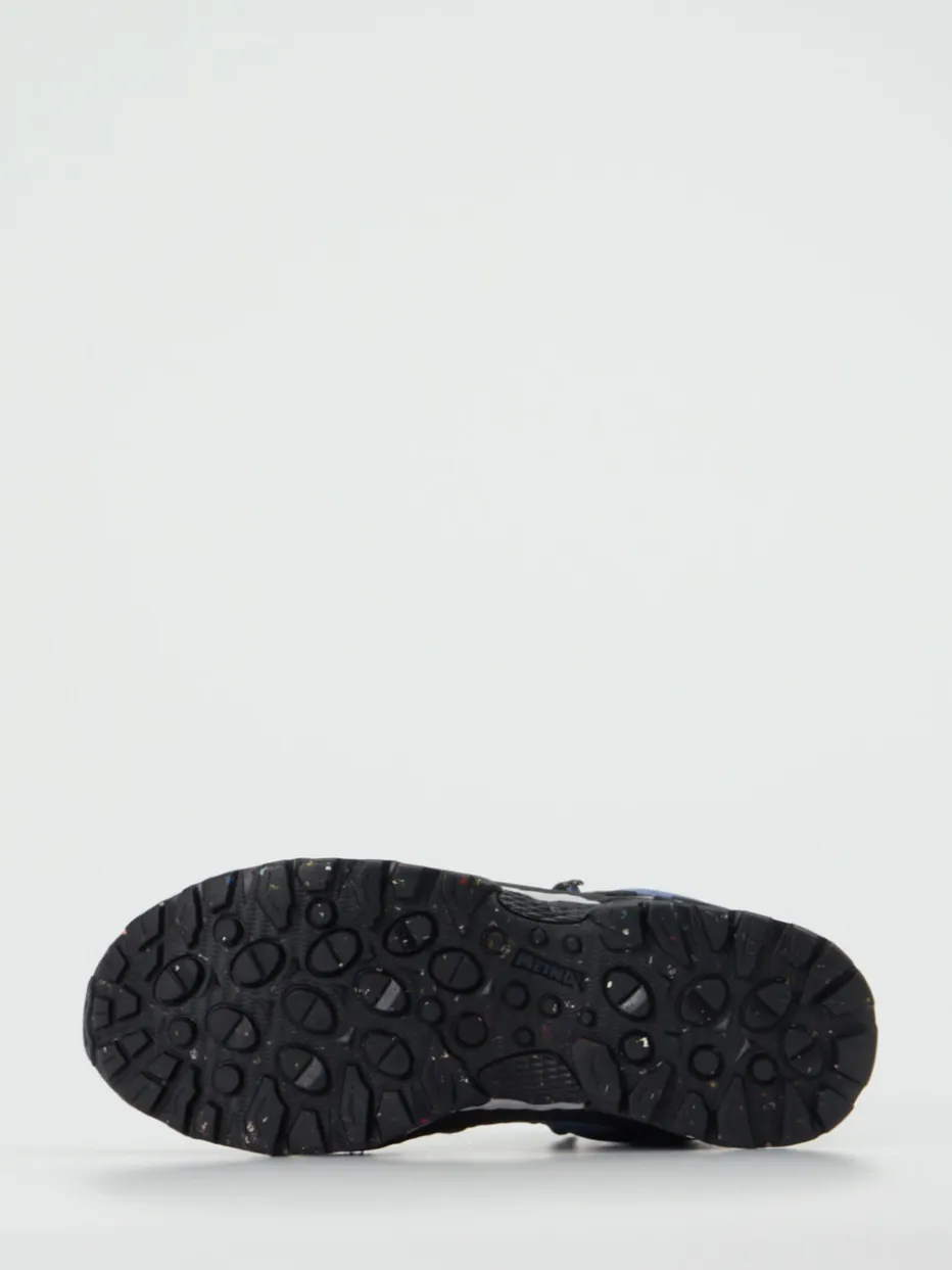 Widerstandsfähig bei jedem Wetter.Meindl liefert mit diesen Wanderschuhen einen zuverlässigen Begleiter für sportliche Outdoor-Abenteuer bei wechselhaften Bedingungen. Mit wind- und wasserdichtem Materialmix aus samtig angeschliffenem Veloursleder und atmungsaktivem Mesh ist das Modell strapazierfähig und komfortabel zugleich. In Jeansblau mit Kontrastelementen in Schwarz und Hellgrau gehalten, sorgt die reflektierende Ausstattung für Sichtbarkeit auch bei Dämmerung. Die knöchelhohe Form, verstärkte Zehenkappe und die massive Gummisohle mit Recycling-Anteilen bieten Schutz und Stabilität auf jedem Terrain. Der Schuh passt in funktionale wie modische Looks der Gorpcore-Ästhetik. Robuste Markenqualität mit durchdachtem Outdoor-Komfort.