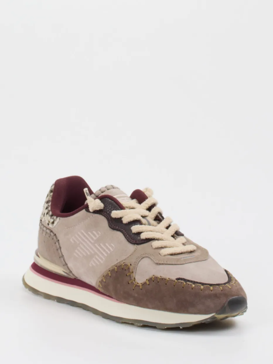 Vintage-Vibes mit modernem Twist.MRP präsentiert diesen Retro-Sneaker für Damen im ikonischen 90s-Stil. Ideal für entspannte City-Walks oder stylishe Reisen vereint er Komfort mit Eyecatcher-Qualität. Veloursleder – samtig angeschliffen – trifft auf feines Textil, während der beigegraue Grundton durch mittelbraune und bordeauxfarbene Akzente ergänzt wird. Ein Animal-Print an der Ferse, Kontrastnähte und ein gepolsterter Einstieg betonen das Design. Die profilierte Gummisohle setzt mit Leo-Print einen modischen Akzent und passt perfekt zum Trend ‚Animal Prints AW24‘. Lässt sich hervorragend mit einer beigefarbenen Steppjacke oder Crossbody-Bag kombinieren. Ein markanter Casual-Sneaker mit trendbewusster Formsprache von MRP.