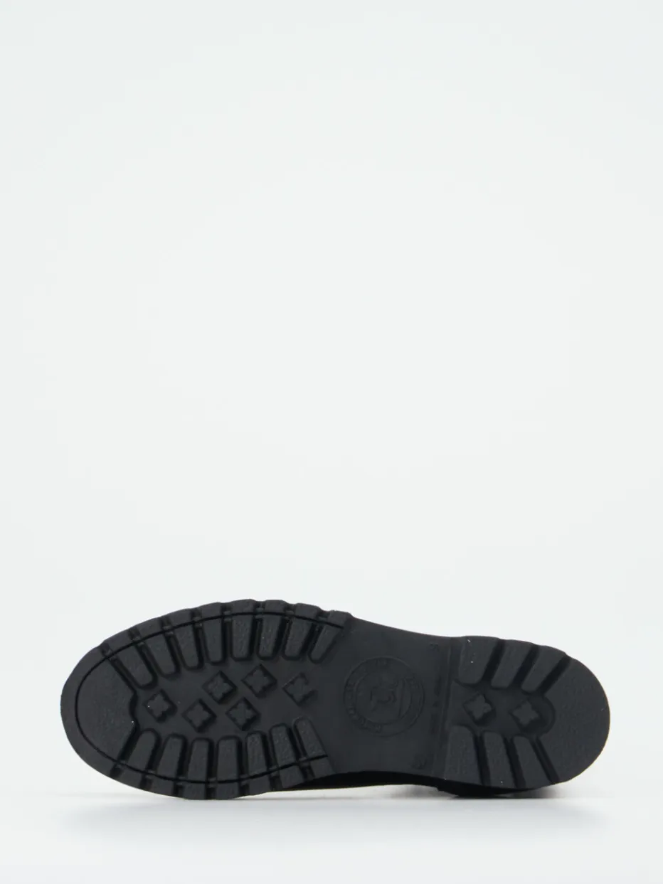 Schwarz trifft auf Substanz.Panama Jack interpretiert mit dieser Damen-Stiefelette die Chelsea Boots auf zeitgemäße Weise. Der robuste Look eignet sich perfekt für bewegte Tage in der City oder den Weg ins Büro. Hergestellt aus hochwertigem, wasserabweisendem Fettleder mit genarbter Oberfläche, präsentiert sich das schwarze Modell mit klassischem Schaft und seitlichen Elastikeinsätzen. Die profilierte Gummisohle gibt sicheren Halt, während das weiche Lammfellfutter Wärme verspricht. Eine silberfarbene Metallapplikation setzt dezenten Markenakzent. Der reduzierte Stil passt zum „Quiet Luxury“-Trend und lässt sich ideal mit Kaschmirmantel oder Ledertasche kombinieren. Ein durchdachter Alltagsbegleiter mit klarer Formsprache und qualitativer Tiefe.