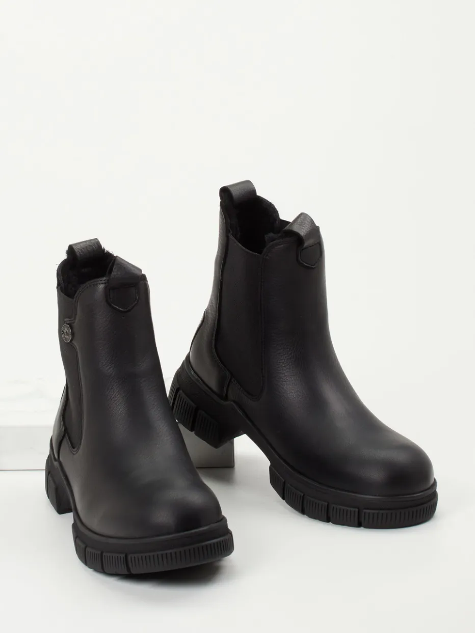 Robust im Stil, komfortabel im Alltag.Die Chelsea-Stiefelette von Panama Jack richtet sich an Damen mit einem Gespür für Qualität und zeitlose Formen. An kalten Tagen bietet das gefütterte Lammledermodell zuverlässigen Schutz bei maximalem Komfort – unterstützt durch ein wärmendes Innenfutter aus Lammfell. Das tiefschwarze, genarbte Leder unterstreicht mit einem Ton-in-Ton-Look den „Quiet Luxury“-Charakter, während die rund geschnittene, knöchelhohe Silhouette mit seitlichen Elasteinsätzen und Zuglaschen alltagstaugliche Funktion verspricht. Eine tief profilierte Gummisohle mit 4 cm Absatzhöhe sorgt für sicheren Stand auf nassem oder glattem Untergrund. Minimalistisches Design trifft Outdoor-Tauglichkeit mit modischem Feingefühl. Ein ausdrucksstarker Stilpartner von langlebiger Wertigkeit für winterliche City- und Casual-Looks.