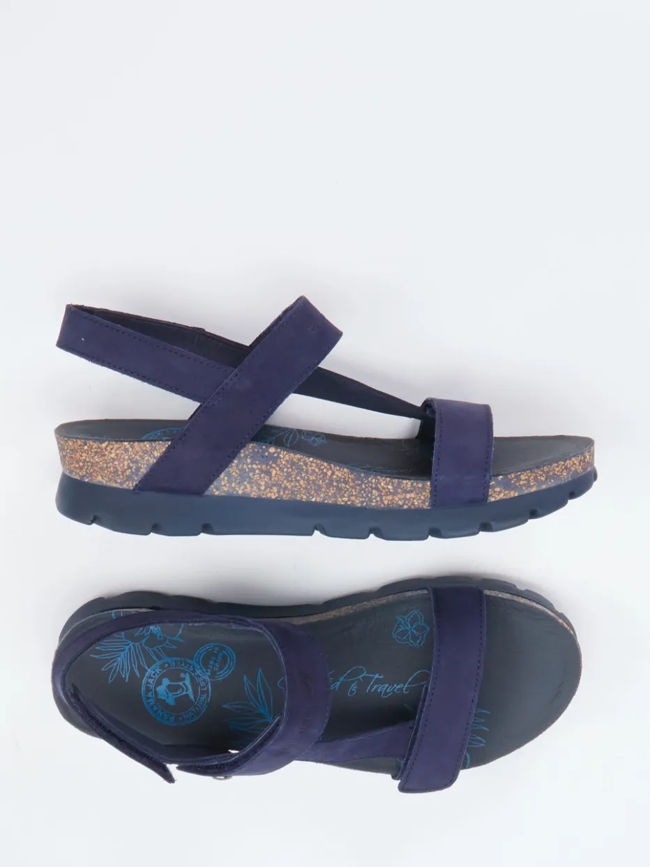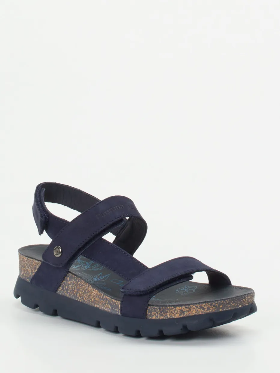 Für stilvolle Komfort-Momente an warmen Tagen.Panama Jack präsentiert eine Damen-Keilsandalette, die Alltagstauglichkeit und modischen Purismus vereint. Das weiche Lammleder in sattem Nachtblau verleiht dieser offen geschnittenen Sandale ihre edle Ausstrahlung. Ein ergonomisch geformtes, lederbezogenes Korkfußbett mit floraler Prägung unterstützt den Fuß auch auf längeren Strecken, während drei Klettverschlüsse sicheren Halt und flexible Anpassung ermöglichen. Die profilierte Gummisohle sorgt für Trittsicherheit auf vielfältigem Terrain und betont die Outdoor-inspirierte Formsprache. Eingebettet in aktuelle Themen wie „Quiet Comfort“ ist das Modell ideal für komfortbewusste Freizeitlooks. Kombiniert mit Leinenhose oder Funktionsshorts entsteht ein entspannter Sommer-Look. Ausgewogener Gehkomfort trifft auf langlebige Qualität mit dem unverwechselbaren Panama Jack Charakter.