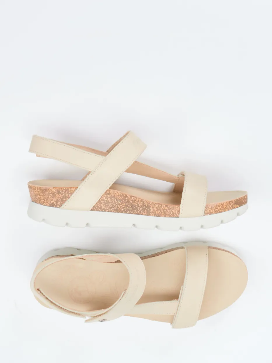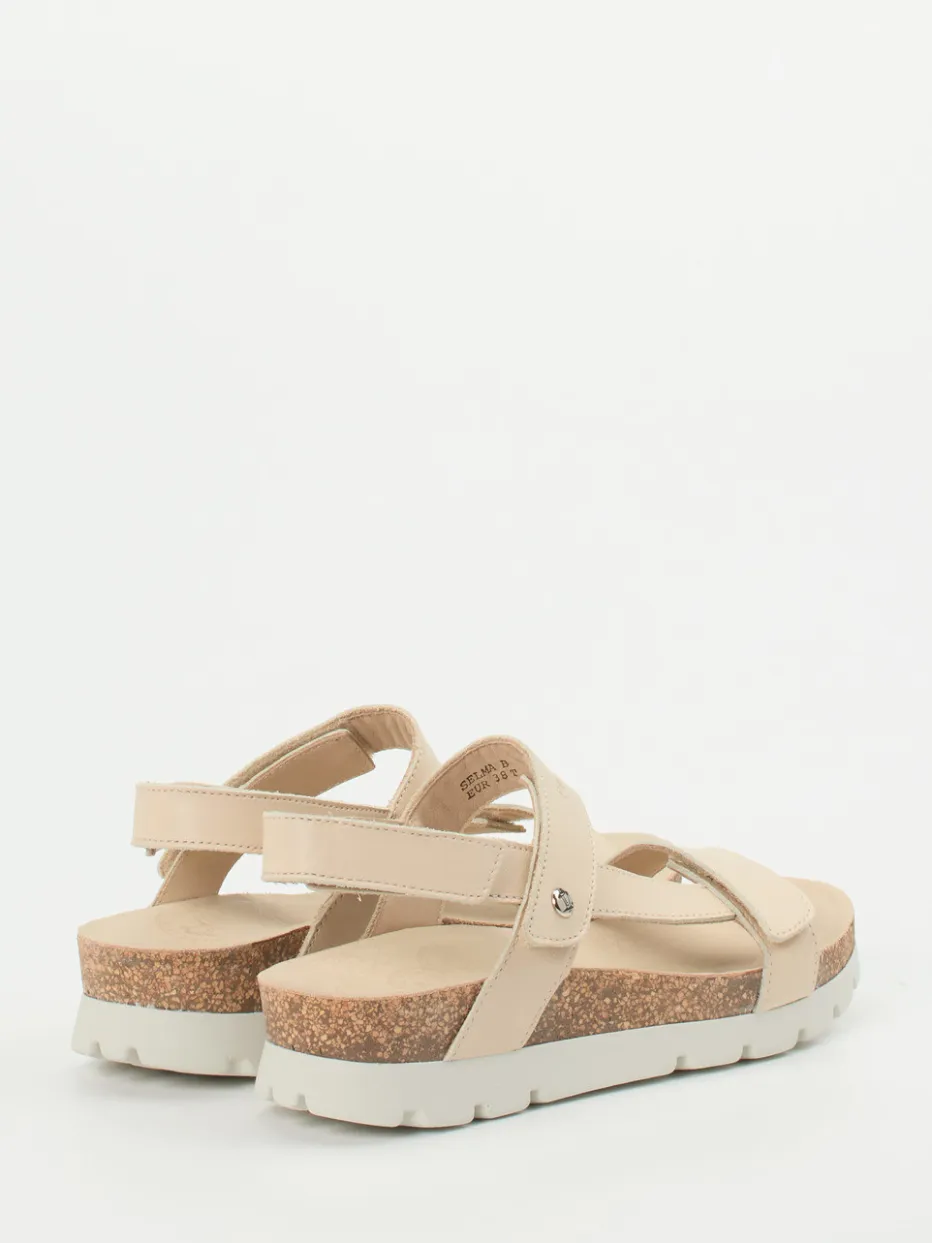 Schlichtes Design für sommerliche Freiheit.Panama Jack präsentiert eine Damen-Komfort-Sandale, die durch Tragekomfort und Materialqualität besticht. Ideal für warme Tage und stilsichere Freizeitlooks bietet das beige Lammleder in matter Optik eine wertige Basis. Drei Klettverschlüsse sorgen für individuelle Anpassung, während das lederbezogene Korkfußbett ergonomisch geformt ist. Die flexible Gummisohle mit rutschhemmendem Profil garantiert sicheren Tritt – auch bei längeren Urlaubsspaziergängen. Die offene, minimalistische Silhouette folgt dem Natural Tones-Trend der Saison. Lässt sich hervorragend mit Leinenhosen oder hellen Sommerkleidern kombinieren. Ein durchdachter Mix aus Komfort und natürlicher Ästhetik – typisch Panama Jack.