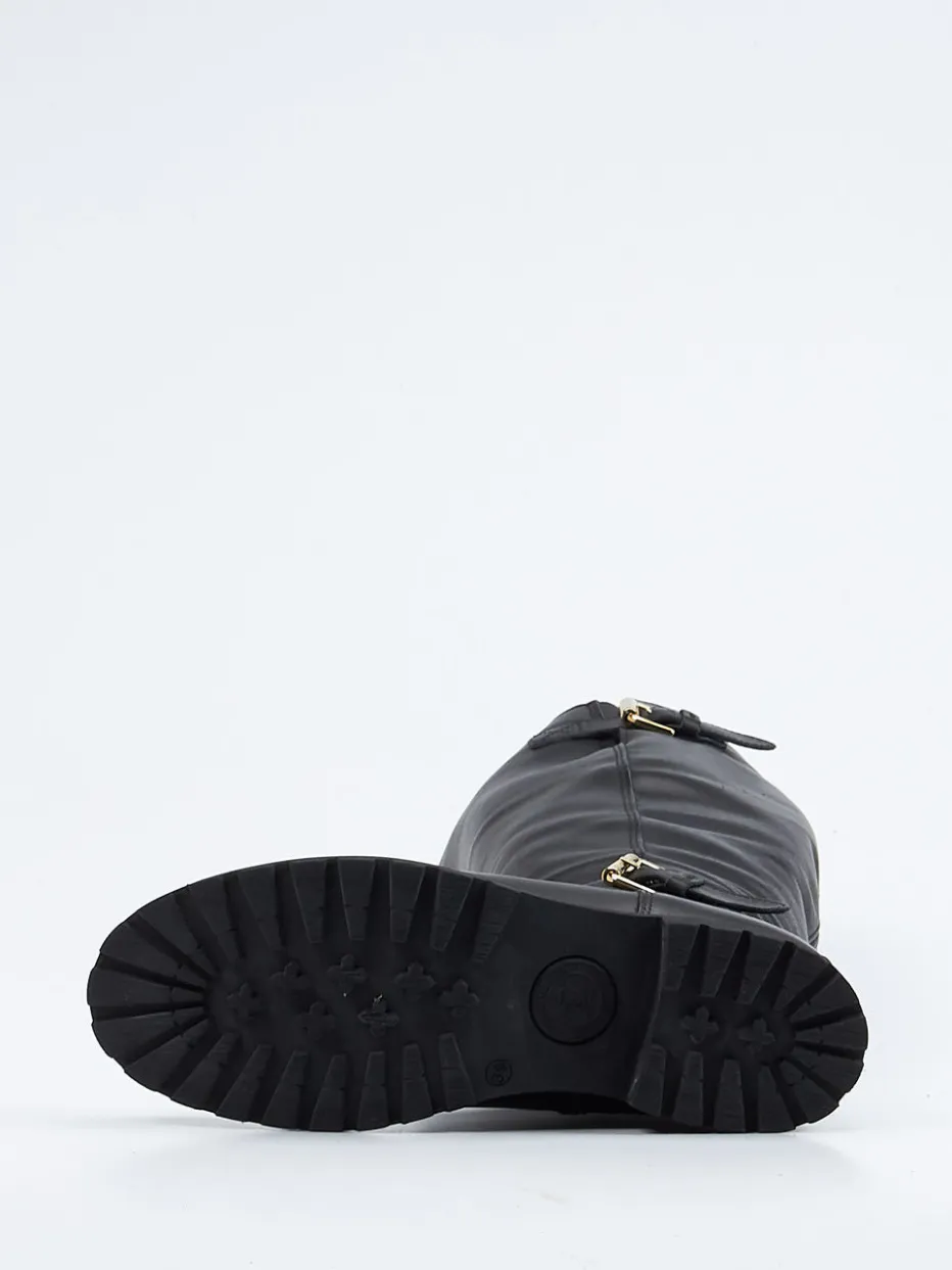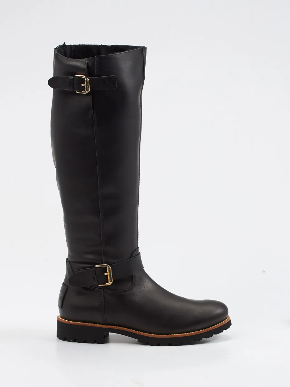 Dieser kniehohe Damenstiefel von Panama Jack vereint edles, gefettetes Kalbleder mit funktionalem Design für Herbst und Winter. Robuste Details und Schnallen setzen stilvolle Akzente.