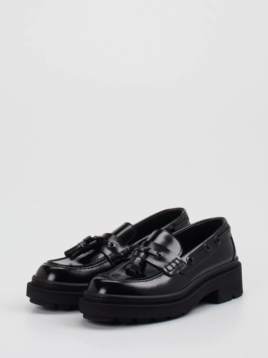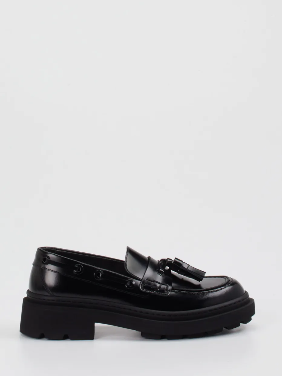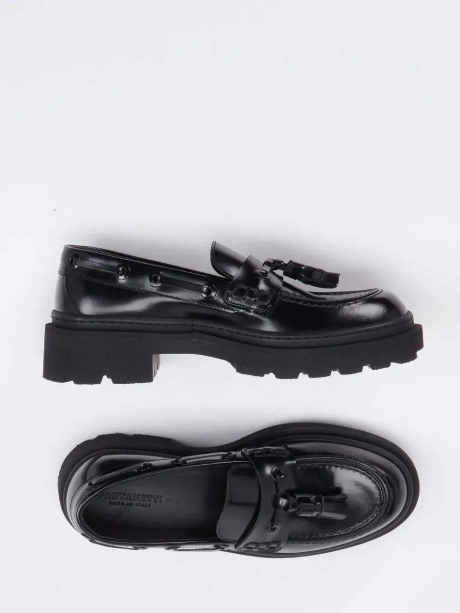 Pantanetti präsentiert mit diesem Damen-Loafer ein Modell, das ikonische Formen mit modernem Anspruch kombiniert. In Situationen, die nach stilistischem Feinsinn verlangen – vom kreativen Büroalltag bis zum Galerieabend – überzeugt dieser Chunky-Loafer aus hochwertigem, glänzendem Glattleder. Das tiefe Schwarz betont die klassische Silhouette, während dekorative Quasten und Zierösen im Mokassin-Stil raffinierte Akzente setzen. Die betont breite Profilsohle verleiht urbane Bodenhaftung – im Trend gesichert durch „Quiet Luxury“ und den Chunky-Look der Saison. Ideal zu Strickkleidern oder Oversized-Blazern. Ein Statement-Piece für trendorientierte Individualität mit handwerklicher Authentizität.