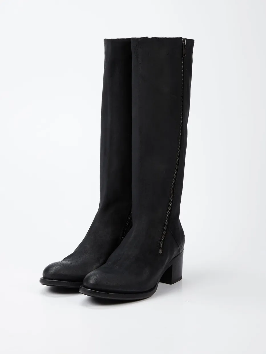 Fein gebürstetes Veloursleder und klare Linienführung formen bei diesem Kniestiefel einen eleganten Stilmix für moderne Business- und Freizeit-Looks.