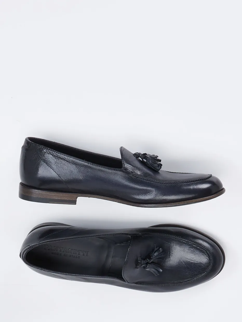 Handgefertigte Eleganz aus Italien: Der dunkelblaue Tassel Loafer von Pantanetti überzeugt mit hochwertigem Glanz, feinen Nähten und komfortabler Ledersohle mit Gummieinsatz.
