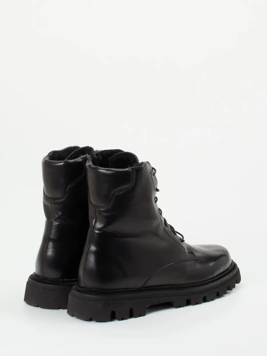 Stilvoll gerüstet für kalte Tage.Pas de Rouge präsentiert elegante Schnürboots für Damen mit luxuriösem Komfort. Ob auf winterlichen Stadtwegen oder beim Spaziergang am Sonntagnachmittag – das schwarze, glänzende Lammleder mit monochromer Optik überzeugt durch seine edle Präsenz. Das kuschelige Innenfutter aus Lammfell sorgt für Wärme, während der seitliche Reißverschluss schnelles Anziehen ermöglicht. Die profilierte Leichtzellsohle mit erhöhter Konstruktion bietet ausgezeichneten Grip und schützt zugleich vor Bodenkälte. Klare Linienführung und unaufdringliches Design machen den Boot vielseitig kombinierbar – besonders zu Cargohose und Wollmantel. Pas de Rouge steht für stylische Funktionalität mit italienischem Feinsinn.