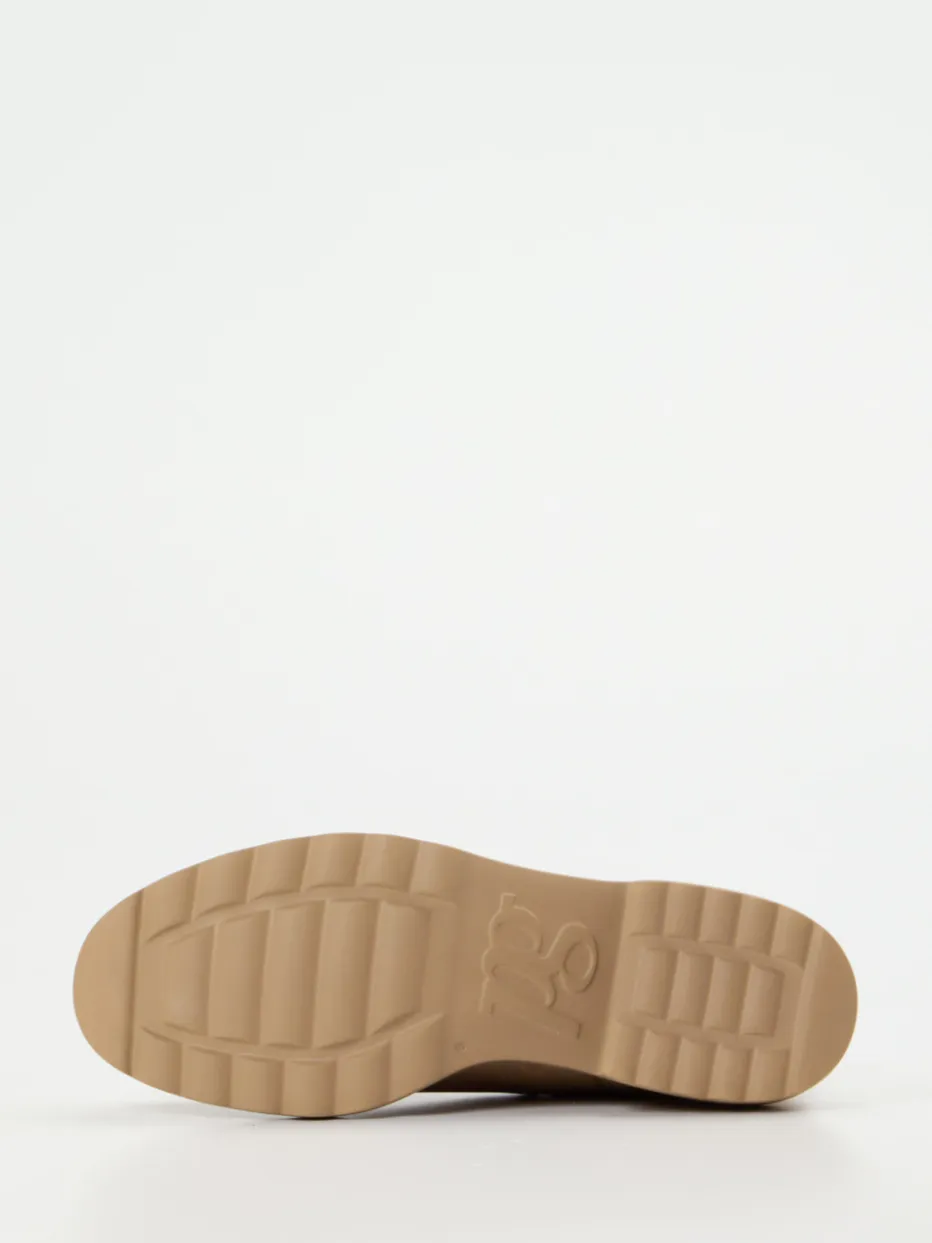 Stilvoll durch den Alltag.Paul Green zeigt mit diesen Chelsea Boots eine gekonnte Interpretation urbaner Klassiker. Für Büro, Stadtspaziergang oder Cafébesuch bieten die beigebraunen Stiefeletten eine ideale Mischung aus Zurückhaltung und Präsenz. Das weiche Nubukleder mit matt samtiger Oberfläche wirkt besonders edel, während die tonigen Elastikeinsätze und die dezente Zuglasche harmonisch ins Design eingebunden sind. Eine tief profilierte Gummisohle mit leichter Plateauhöhe sorgt für sicheren Stand und ein angenehmes Laufgefühl. Klare Formgebung, runde Vorderpartie und komfortbetonte Details unterstreichen das minimalistische Stilprinzip. Kombiniert mit Cropped Jeans und Strick ein treffender „Quiet Luxury“-Look. Markanter Komfort mit stilistischer Raffinesse – typisch Paul Green.