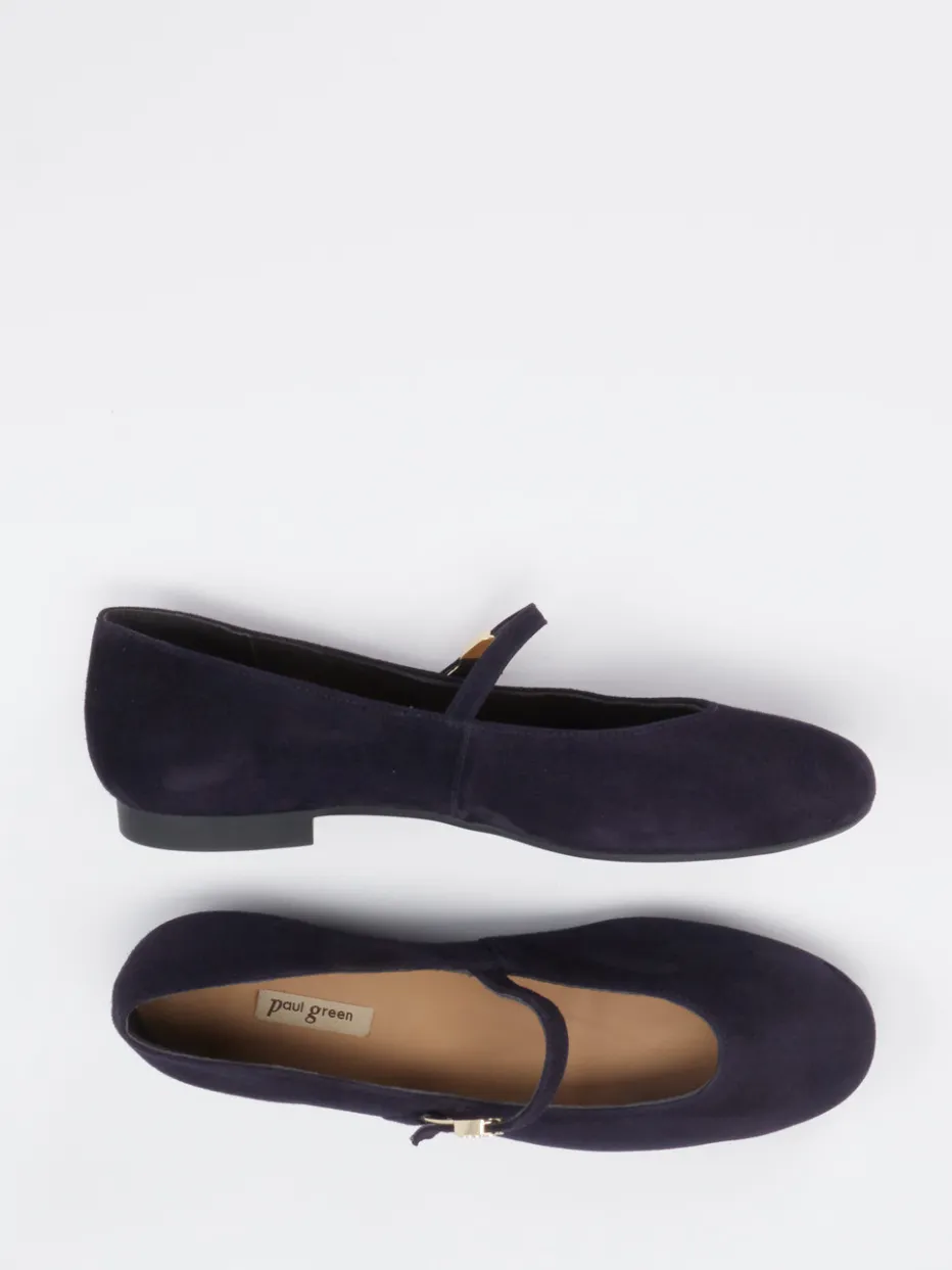 Damen Paul Green – Mary-Jane-Ballerina aus Veloursleder Dunkel