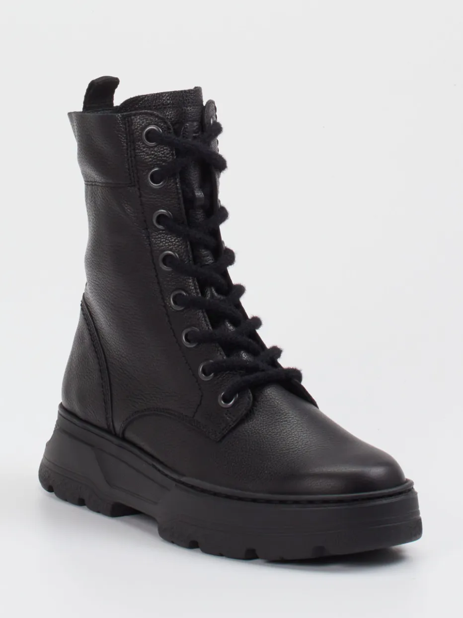Paul Green präsentiert mit diesen Schnürboots ein stilvolles Modell für anspruchsvolle Damen. Wenn klare Linien und funktionales Design gefragt sind, überzeugt dieses Modell mit hochwertigem, genarbtem Kalbleder und hohem Schaft. Die Kombination aus Schnürung und seitlichem Reißverschluss erleichtert den Einstieg, während schwarze Metallösen und Ton-in-Ton-Nähte das monochrome Gesamtbild schärfen. Die robuste Profilsohle aus Gummi bietet rutschfesten Halt – auch an nassen Tagen. Inspiriert vom Chunky-Trend mit Anleihen im Utility-Stil, passt die Stiefelette perfekt zu legeren Oversize-Mänteln oder minimalistischen Looks. Ein Modell, das Komfort, Langlebigkeit und urbanen Anspruch der Marke Paul Green vereint.