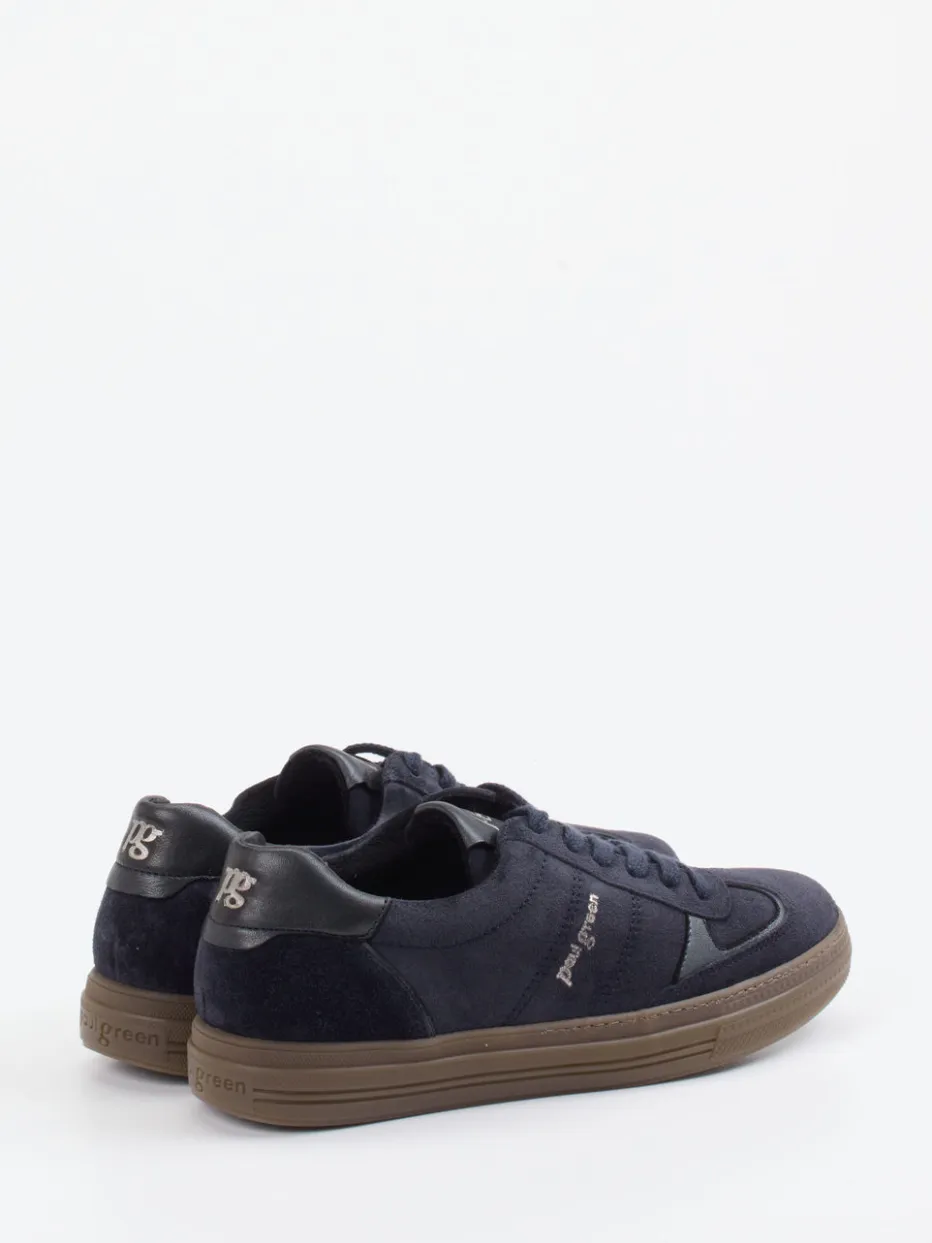 Reduziert und souverän.Paul Green steht bei diesem Damen-Sneaker für dezente Eleganz und spürbaren Komfort. Ideal für entspannte City-Tage oder den stilvollen Alltagslook überzeugt der low-top Sneaker durch weiches Veloursleder in tiefem Dunkelblau. Die samtig matte Oberfläche trifft auf tonale Nähte und harmonische Farbkontraste in Anthrazit und Mittelbraun. Gepolsterter Schaftrand und atmungsaktives Frottee-Innenfutter sorgen für angenehmes Trageklima. Die profilierte Gummisohle bietet Trittfestigkeit beim Gehen – ein Modell zwischen Retro-Court-Optik und „Quiet Luxury“-Anmutung. Kombinierbar mit Straight-Fit-Jeans und minimalistischen T-Shirts. Ein Sneaker, der souveräne Zurückhaltung mit erlesenem Komfort verbindet.