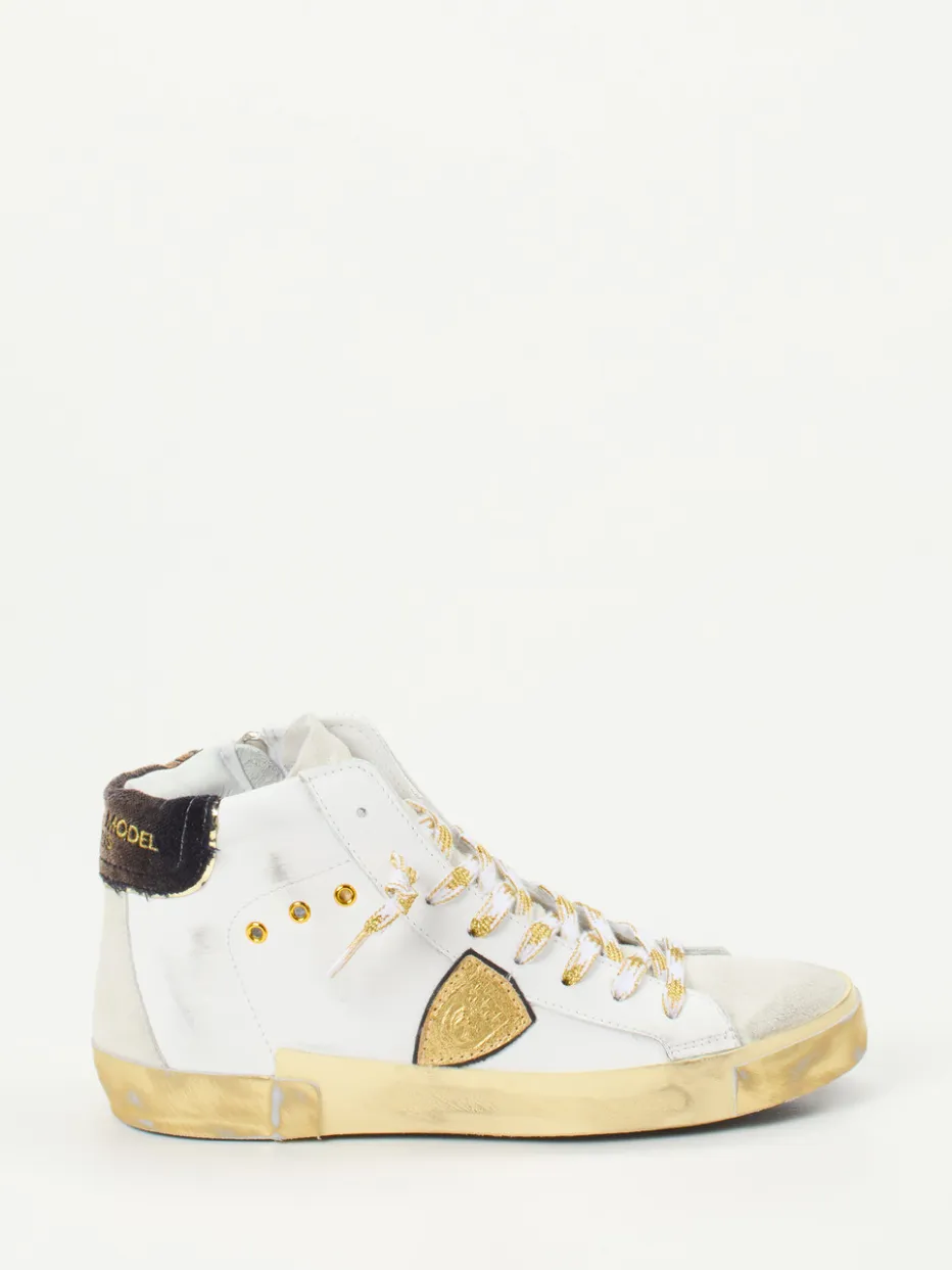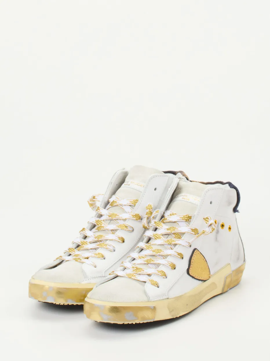Philippe Model interpretiert den High-Top Sneaker neu – mit weißem Kalbleder und expressiven Details.