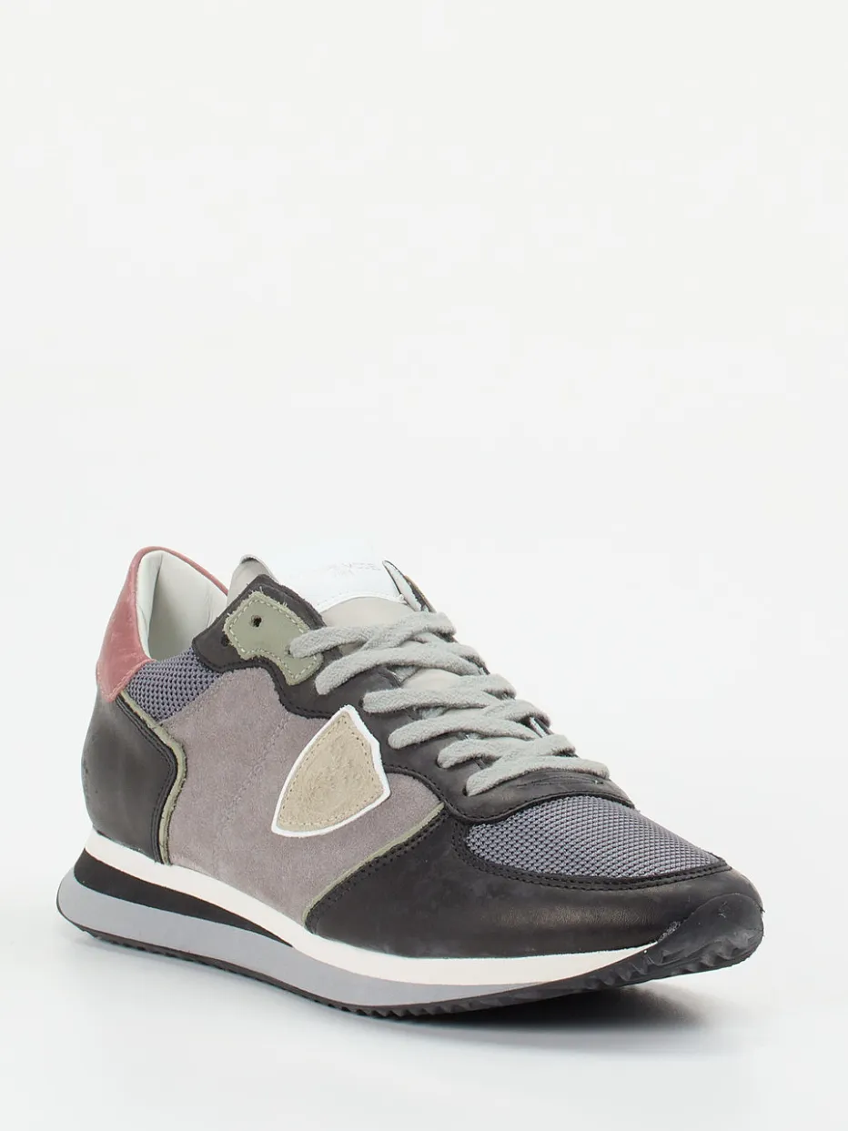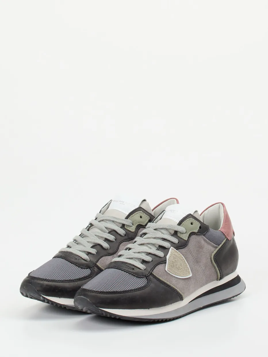 Retro-Runner mit Stilgefühl.Philippe Model interpretiert den klassischen Sneaker neu und verbindet Kalbleder mit Vintage-Flair. Ideal für urbane Tage im Streetstyle oder entspannte Reisen: Der Materialmix aus Kalbleder, samtig angeschliffenem Veloursleder und luftigem Mesh trifft auf eine flache Silhouette mit gedämpfter Farbgebung in Anthrazitgrau, Hellgrau und Altrosa. Logo-Details an Seite, Ferse und Zunge unterstreichen den Markencharakter. Die komfortable Porosohle mit Profil und Frotteefutter bietet angenehmen Tragekomfort. Ein stilprägendes Modell für trendorientierte Casual-Looks. Ein Sneaker mit gehobener Verarbeitung und modischer Profilsohle – typisch Philippe Model.