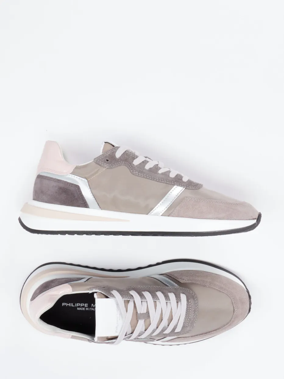 Eleganz mit sportlichem Erbe.Der Damen-Sneaker von Philippe Model verbindet Retro-Laufschuh-Design mit modischem Anspruch. Ideal für einen stylishen Stadtbummel oder entspannte Freizeitmomente kombiniert dieses Modell taupefarbenes Veloursleder mit tonigem Textil. Akzente aus glänzendem Lackleder in Rosé und Weiß betonen die feminin-sportive Optik. Die ultraleichte Gummisohle mit profilierter Unterseite bietet Trittsicherheit, während Frottee-Innenfutter und gepolstertes Fußbett Komfort schaffen. Silberfarbene Details und Logo-Elemente unterstreichen das lässige Trendbewusstsein. Ein komfortabler Alltagsbegleiter mit italienischer Designhandschrift.