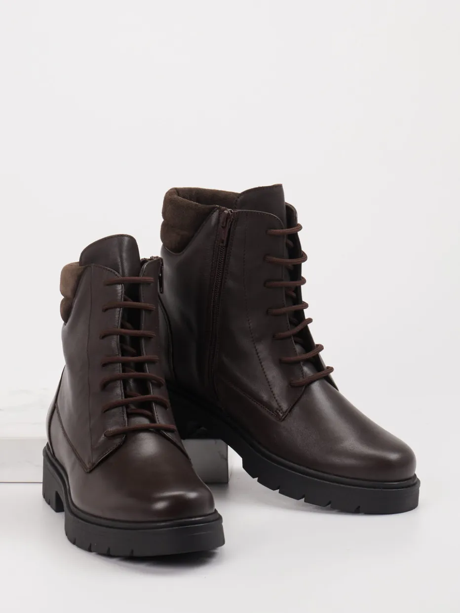 Für kühle Tage und widriges Wetter gemacht, bestehen die Damenboots aus hochwertigem Leder mit matter Oberfläche. Die dominante Farbe Dunkelbraun, die knöchelhohe Silhouette sowie tonale Schnürsenkel verleihen dem Modell eine cleane Ausstrahlung. Ein seitlicher Reißverschluss ergänzt die klassische Schnürung und erleichtert den Einstieg, während die rutschfeste Profilsohle sicheren Halt bei winterlichen Bedingungen bietet. Minimalistische Designelemente fügen sich harmonisch in aktuelle „Quiet Luxury“-Trends ein. Kombiniert zu Steppjacken oder Thermo-Leggings wird der Look alltagstauglich abgerundet.