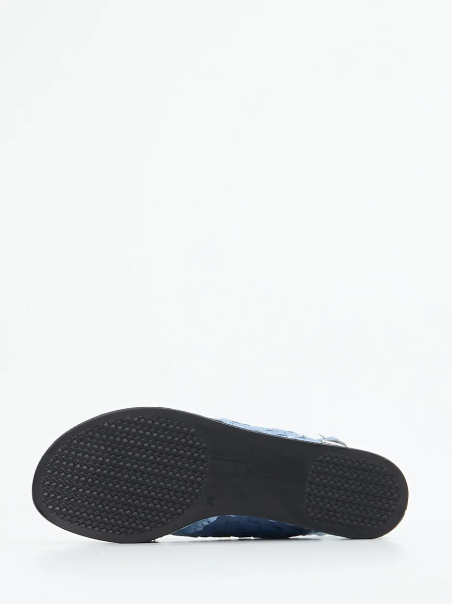 Sommerstil mit mediterraner Note.Pons Quintana zeigt mit dieser Damen-Plateau-Sandale eine stilvolle Interpretation klassischer Flechtoptik. Ideal für City-Spaziergänge oder Urlaubsoutfits bietet das hellblaue Flechtleder in matter Oberfläche und Kreuzriemenführung ein luftiges Tragegefühl. Die gepolsterte Innensohle sorgt für Bequemlichkeit, während die schwarze Gummisohle Trittsicherheit gewährt. Akzente setzen die silberfarbene Schließe und der verstellbare Fersenriemen. Im Trend der Pastellfarben und inspiriert von mediterranem Design passt dieses Modell ideal zu Leinenkleidern oder hellen Accessoires. Hochwertige Materialien treffen auf zurückhaltenden Luxus mit handwerklichem Anspruch.