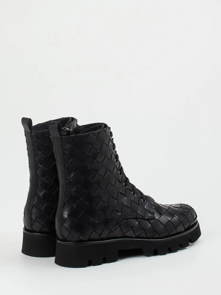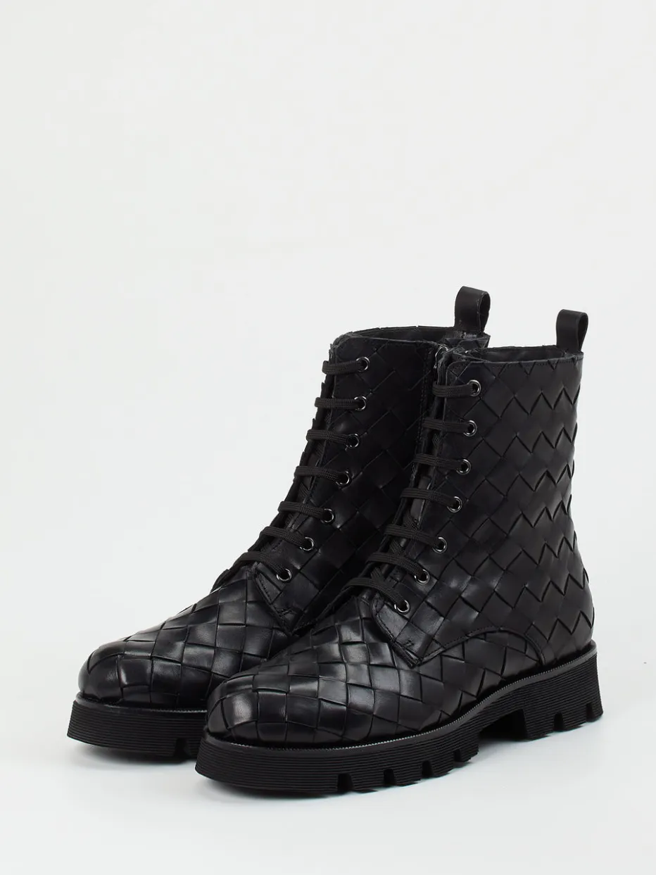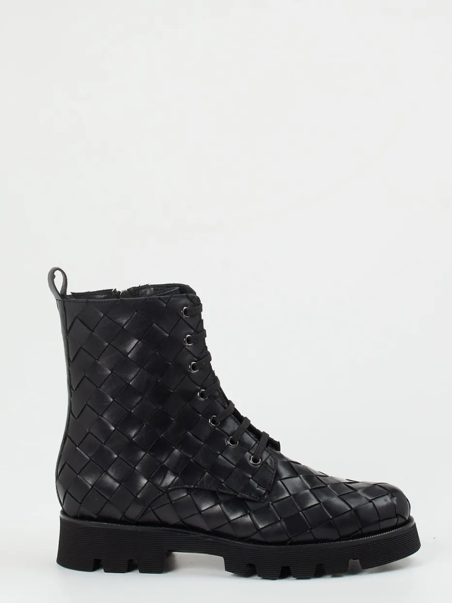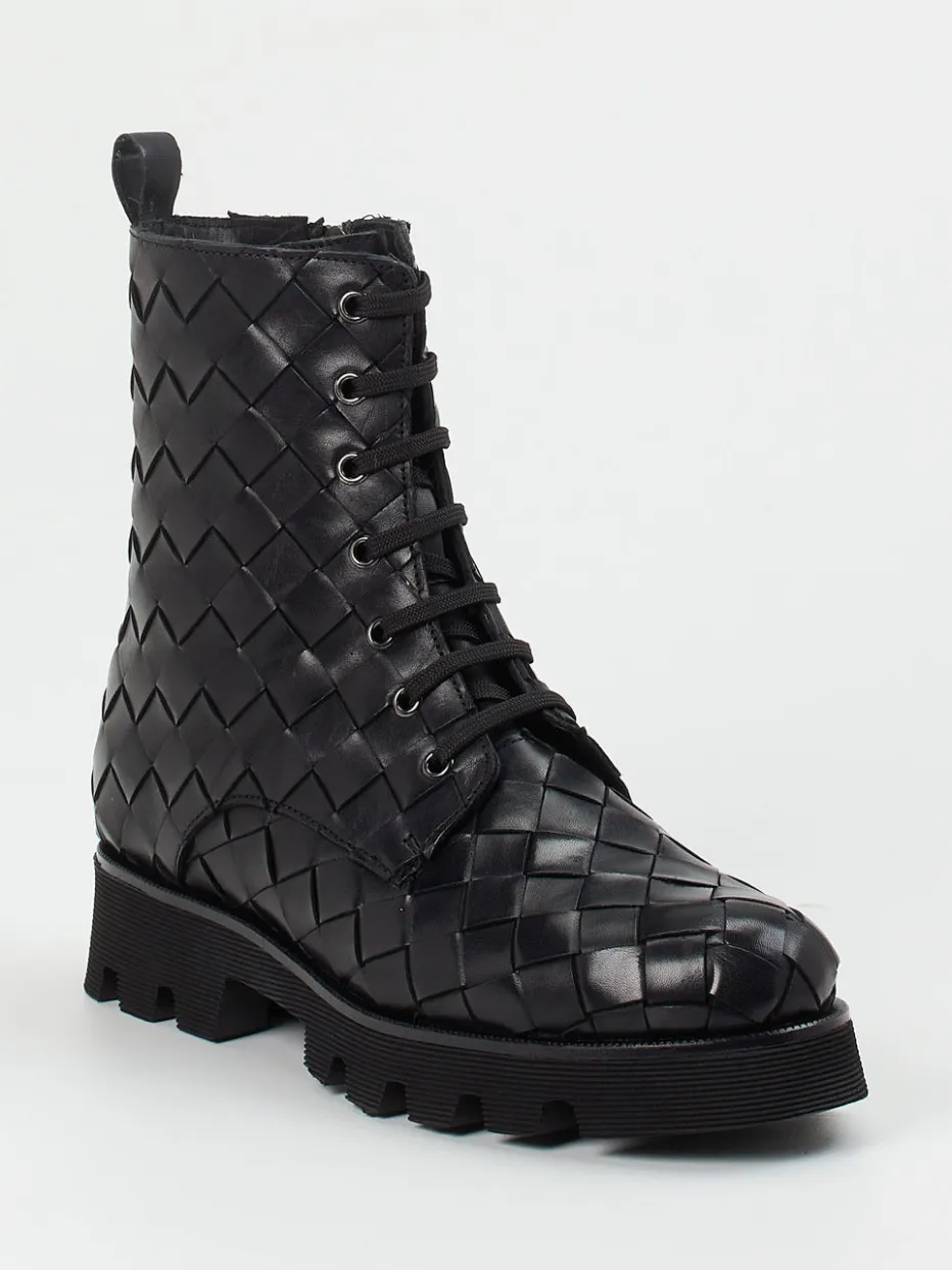 Hochwertiges Flechtleder, kombiniert mit klarer Silhouette und funktionalem Reißverschluss, macht diesen Schnürboot zum minimalistischen Hingucker mit urbaner Präsenz.