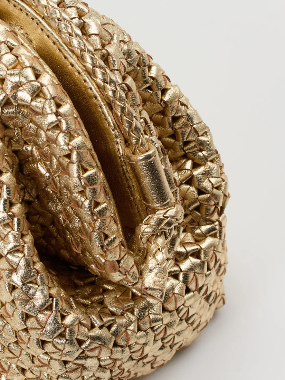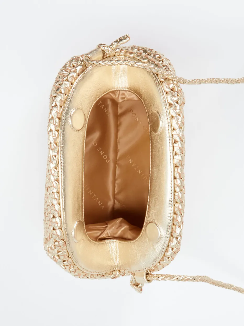 Die Pons Quintana Schultertasche verbindet hochwertiges Flechtleder mit modernem Metallic-Look – ideal für stilbewusste Abendauftritte.