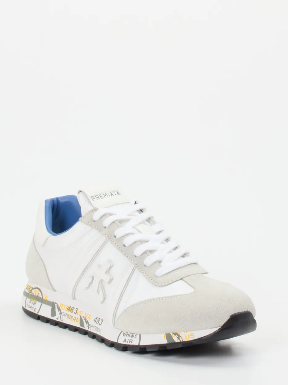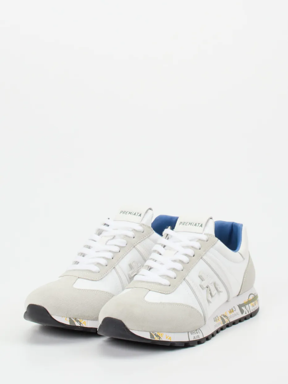 Stil-Statement im sportiven Look.Premiata liefert mit diesem Damen-Sneaker ein stimmiges Modell im angesagten 90s-Stil. Ideal für urbane Looks mit Komfortanspruch überzeugt der Retro-Runner mit weichem Veloursleder, ergänzt durch samtige Glattledereinsätze und tonales Nylon. Die weiße Grundfarbe wird durch hellgraue und kobaltblaue Details stilvoll akzentuiert. Die klassisch niedrige Silhouette, die gepolsterte Ferse sowie die auffällige Prints auf der Zwischensohle unterstreichen den dynamischen Charakter. Modisch verankert im Retro Runner Revival lässt sich der Sneaker vielseitig zu Jeans und Jogpants kombinieren. Ein hochwertiger Auftritt mit sportlich-individueller Note – typisch Premiata.
