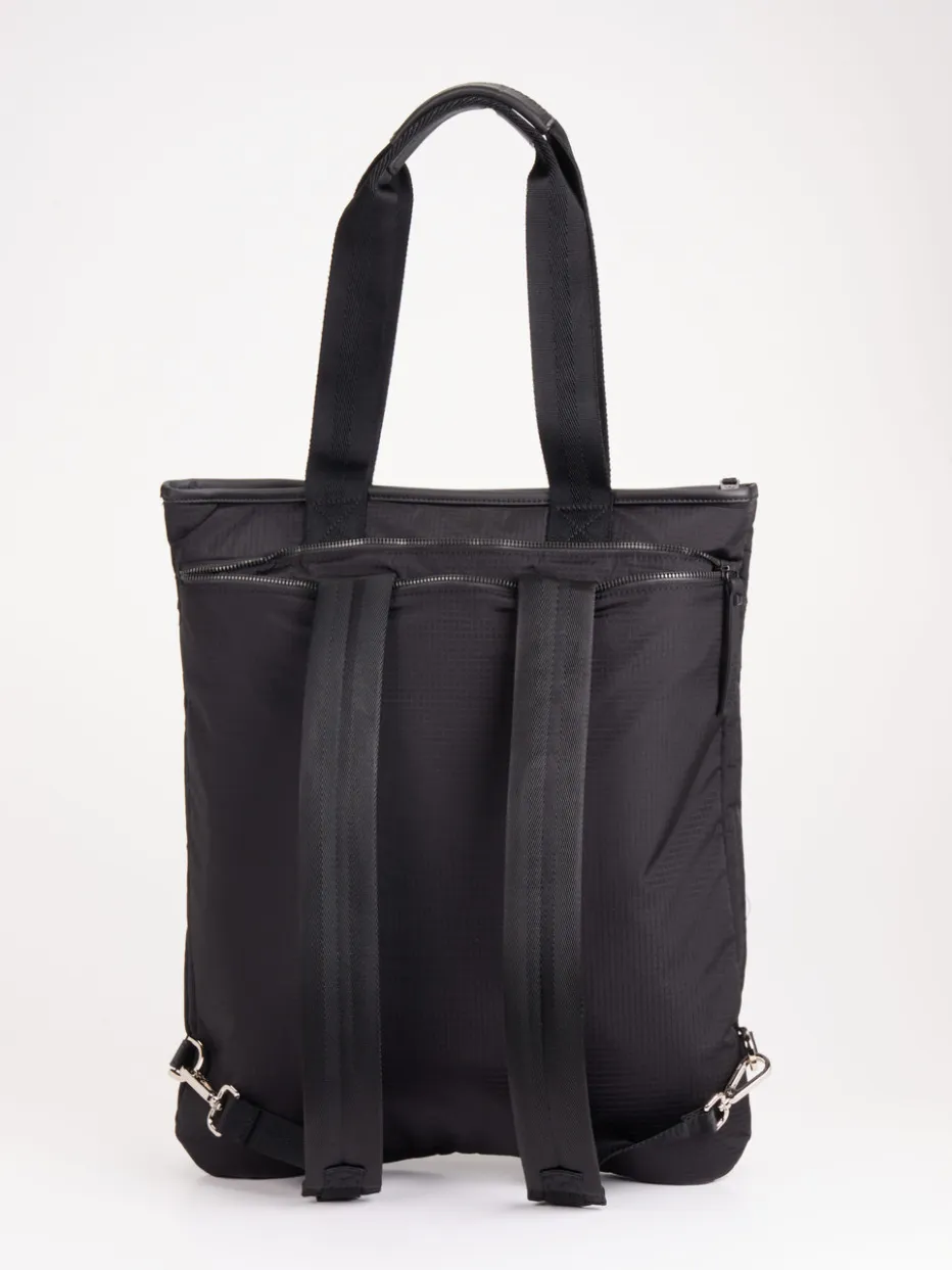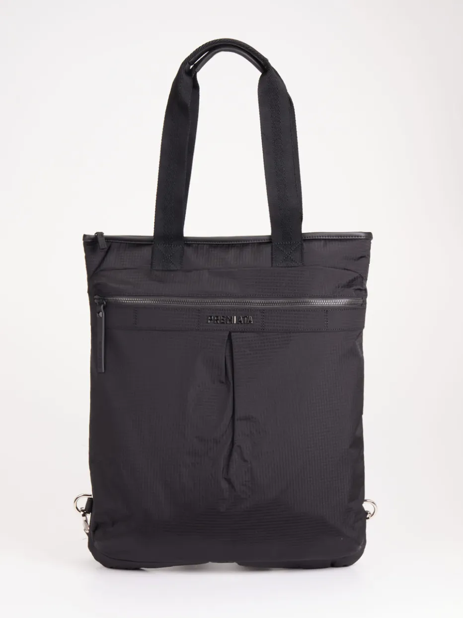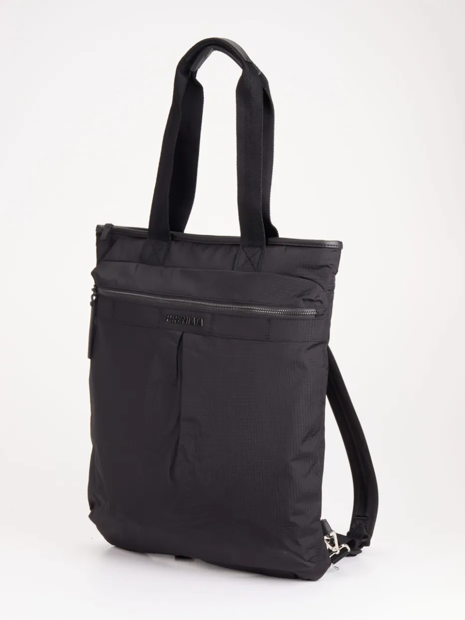 Schwarz, wandelbar und durchdacht: Dieser Premiata-Rucksack vereint minimalistisches Design mit urbaner Funktionalität auf überzeugende Weise.