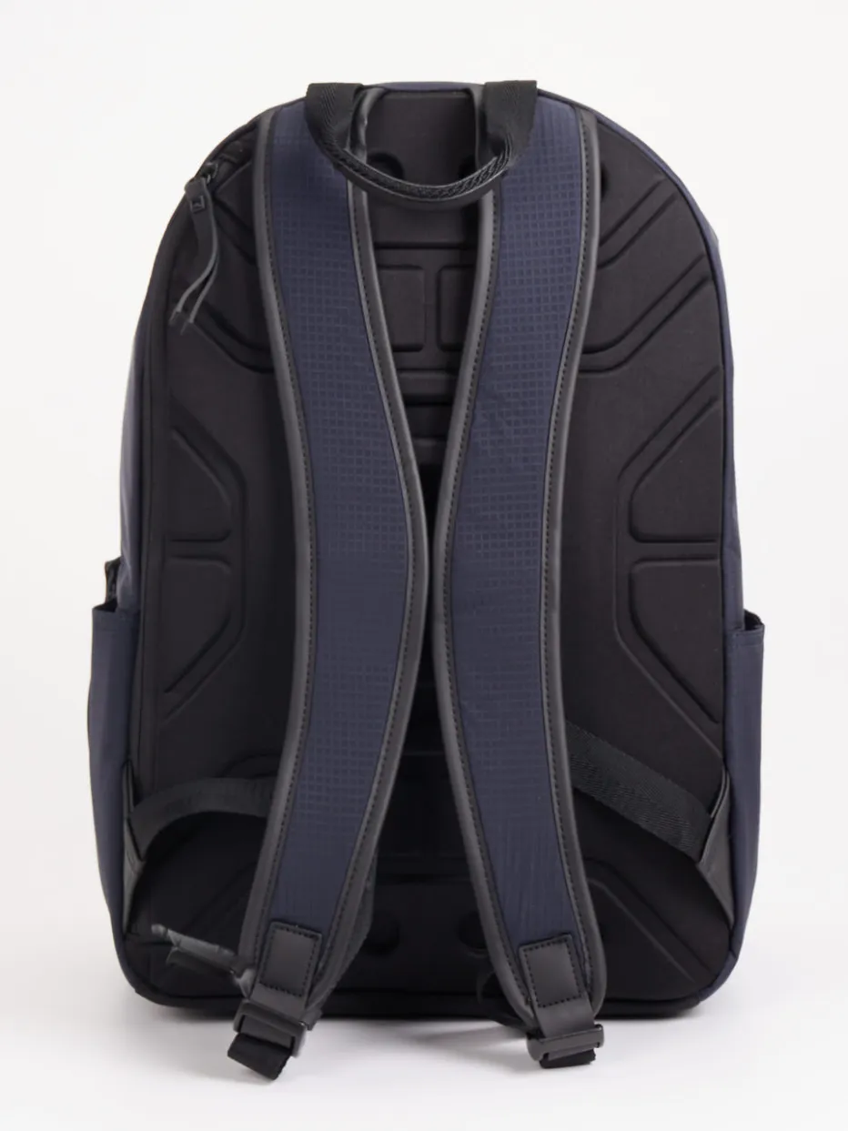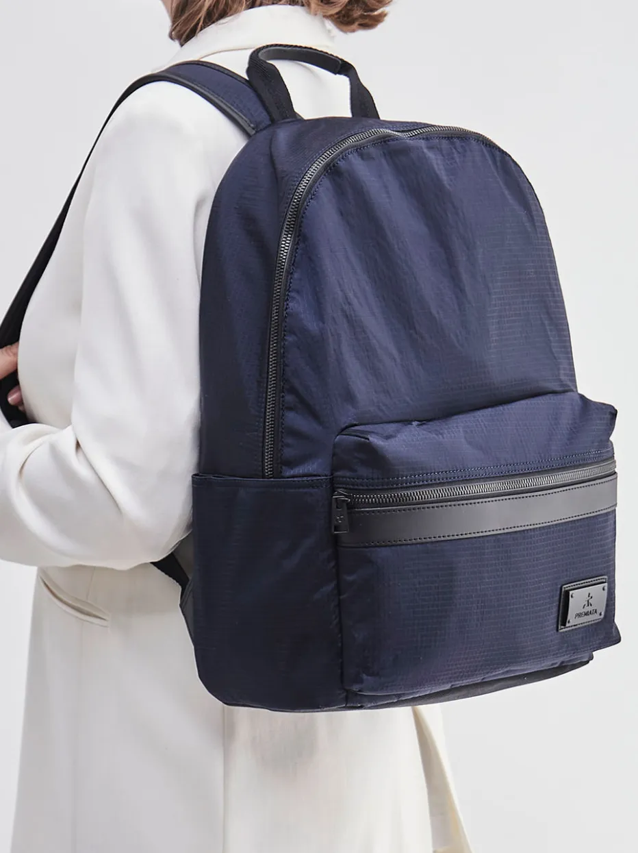 Einen robusten und belastbaren Alltagbegleiter stellt die Marke Premiata mit diesem Rucksack vor. Das dunkelblaue Nylon ist wasserabweisend. Der geräumige Innenraum enthält ein großes Steckfach, zwei Reißverschlussfächer und zwei Netzfächer, sodass Sie Ihre Utensilien organisiert und geordnet unterbringen können. An der Vorder- und Rückseite befinden sich weitere Reißverschlussfächer sowie zwei seitliche Fächer, in denen Sie beispielsweise eine Trinkflasche und einen kleinen Regenschirm verstauen können. Die angenehme Rückenpolsterung zeigt das Firmenlogo. Die Schulterriemen lassen sich an Ihre Bedürfnisse anpassen. – Material: Nylon – Farbe: Dunkelblau – Maße: 40 x 10 x 14 (H x B x T) – Verschluss: Reißverschluss – Innen: ein Steckfach, zwei Reißverschluss- und Netzfächer – Außen: zwei Reißverschlussfächer, zwei Seitenfächer – Schulterriemen: ca. 120 cm, verstellbar