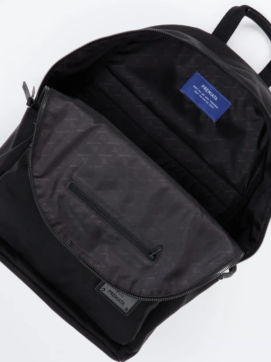 Einen robusten und belastbaren Alltagbegleiter stellt die Marke Premiata mit diesem Rucksack vor. Das schwarze Nylon ist wasserabweisend. Der geräumige Innenraum enthält ein großes Steckfach, zwei Reißverschlussfächer und zwei Netzfächer, sodass Sie Ihre Utensilien organisiert und geordnet unterbringen können. An der Vorder- und Rückseite befinden sich weitere Reißverschlussfächer sowie zwei seitliche Fächer, in denen Sie beispielsweise eine Trinkflasche und einen kleinen Regenschirm verstauen können. Die angenehme Rückenpolsterung zeigt das Firmenlogo. Die Schulterriemen lassen sich an Ihre Bedürfnisse anpassen. – Material: Nylon – Farbe: Schwarz – Maße: 40 x 10 x 14 (H x B x T) – Verschluss: Reißverschluss – Innen: ein Steckfach, zwei Reißverschluss- und Netzfächer – Außen: zwei Reißverschlussfächer, zwei Seitenfächer – Schulterriemen: ca. 120 cm, verstellbar