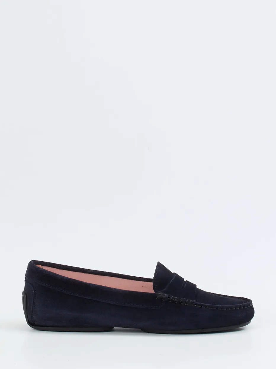 Der klassische Loafer verbindet hochwertiges Veloursleder mit einem minimalistischen Design in Dunkelblau – für stilvolle Everyday-Looks mit Anspruch an Komfort und Zeitlosigkeit.