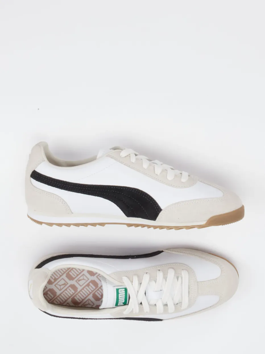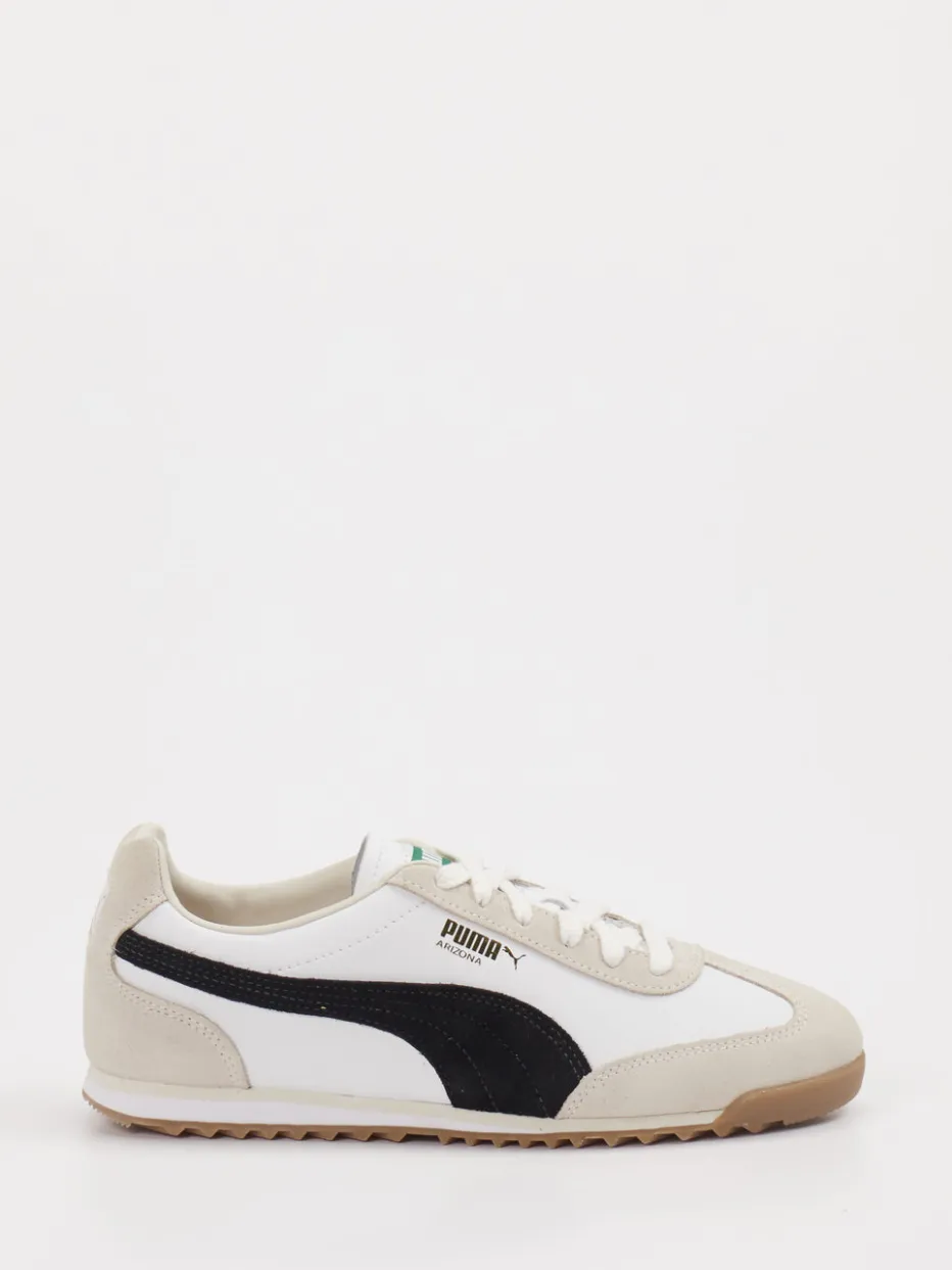 Sportlicher Minimalismus mit Retro-Charakter. Puma präsentiert mit diesem Sneaker ein Modell für die Damenwelt, das klassischen Streetstyle aufgreift. Ideal für entspannte Stadtabenteuer oder aktive Tage mit stilistischem Anspruch: Der Schuh besteht aus Leder und kombiniert glatte mit leicht genarbten Oberflächen – ergänzt durch ein weiches Textilfutter. Das klare Weiß wird durch beigegraue und schwarze Kontrastdetails sowie einen goldfarbenen Logodruck abgerundet. Die profilierte Gummisohle sorgt für Grip, während die klassische Low-Top-Form mit spitz zulaufender Silhouette an Retro Runner erinnert. Ein modischer Allrounder im Zeichen von „Quiet Luxury“. Puma bietet hier einen vielseitigen Freizeitschuh mit durchdachter Materialkombination und modernem Retro-Update.
