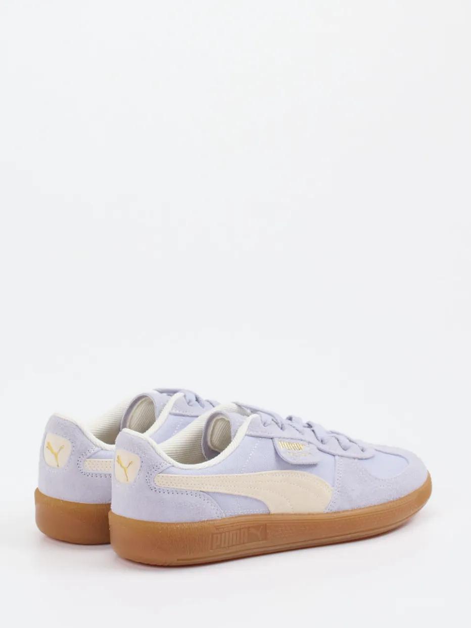 Vintage-Vibe trifft Streetstyle.Der Sneaker von Puma interpretiert die Ästhetik früher Stadionlooks auf zeitgemäße Weise. In Alltagssituationen, in denen Komfort und Stil gefragt sind, punktet dieses Modell mit seinem Materialmix aus Veloursleder, samtig angeschliffen, und atmungsaktivem Textilfutter. Der pastellige Hellfliederton dominiert das Design, ergänzt von cremeweißen Markenstreifen und karamellfarbener Gumsohle im Retro-Look. Goldfarbene Prägungen setzen elegante Akzente. Die klassische Low-Top-Silhouette mit Schnürung und leichten Proportionen unterstreicht das unisex-taugliche Design. Ideal für entspannte Streetstyle- oder Freizeit-Looks. Kompetent verarbeitet mit charakteristischem Puma-Flair.
