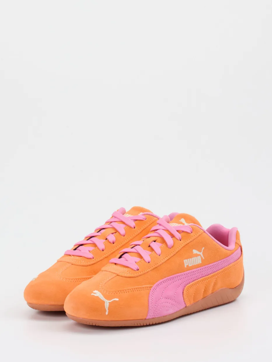 Farbstarker Retro-Charakter mit Markenprofil.Puma präsentiert mit diesem Sneaker ein ausdrucksstarkes Low-Top-Modell für trendbewusste Freizeitlooks. Inspiriert vom Motorsportdesign punktet der Schuh mit einem flachen, schmal zulaufenden Schnitt und auffälligem Color-Blocking in Orange und Pink. Gefertigt aus hochwertigem Veloursleder mit matter Oberfläche, zeigt er farblich abgesetzte Seitenstreifen und markante Logostickereien. Eine profilierte Gummisohle rundet die Silhouette funktional ab. Streetwear-tauglich, partytauglich – und voll im Y2K-Revival-Trend. Besondere Wirkung entfaltet das Modell in Kombination mit Oversized Pullovern oder High-Waist Jeans. Design, Komfort und Authentizität – Puma steht für stilprägende Statements in Bewegung.