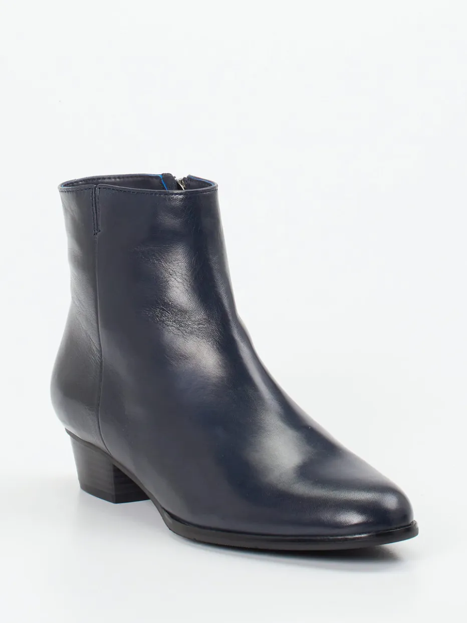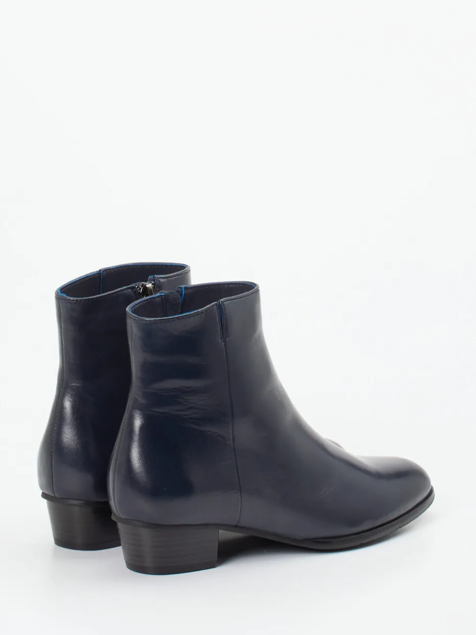 Diese Ankle Boots vereinen hochwertiges Lammleder in elegantem Dunkelblau mit klassischer Linienführung und dezenter Vintage-Note – perfekt für minimalistische Looks.