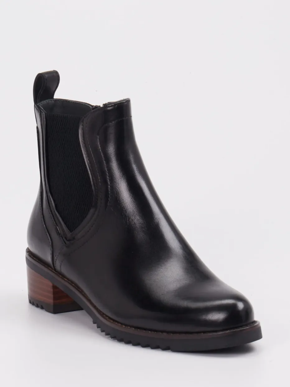 Minimalistische Eleganz für jeden Tag.Ralph Harrison präsentiert mit diesen Chelsea Boots eine stilvolle Damen-Stiefelette aus hochwertigem Lammleder. Ideal für herbstliche Stadtspaziergänge oder den Business-Alltag: Die klassisch-knöchelhohe Silhouette kombiniert schwarzes, glänzendes Lammleder mit praktischen Details wie einem seitlichen Elastikeinsatz, Reißverschluss und einer griffigen Gummisohle. Feine Ton-in-Ton-Nähte und eine dunkelbraune Absatzschicht setzen dezente Akzente. Die innenliegende Fütterung aus Lammnappa sorgt für angenehmen Tragekomfort. Inspiriert vom britischen Heritage-Stil trifft diese Stiefelette den aktuellen „Quiet Luxury“-Trend. Zeitloses Design mit funktionalem Anspruch, raffiniert umgesetzt von Ralph Harrison.