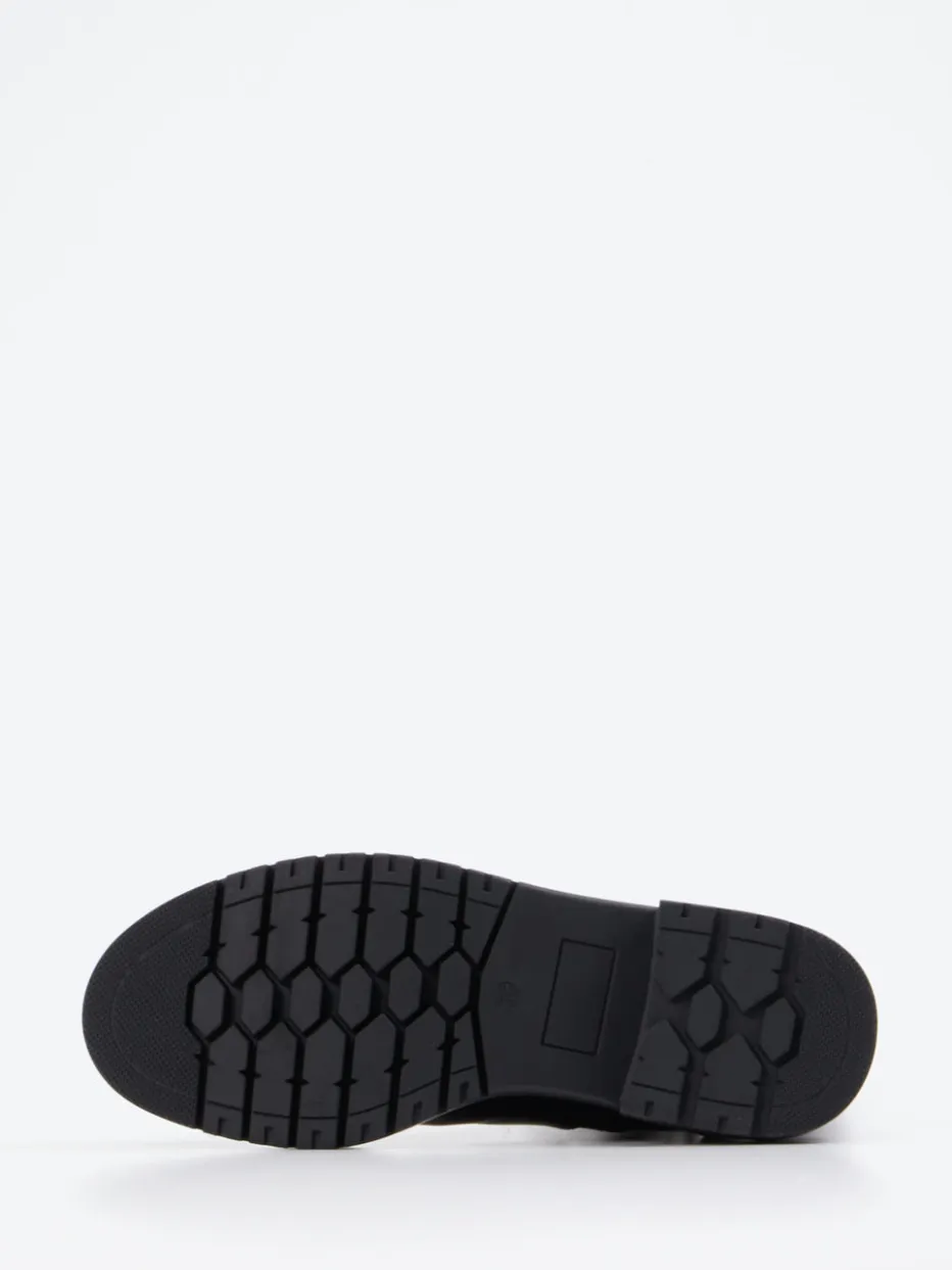 Die Chelsea-Stiefelette verbindet robustes Kalbleder mit modernem Streetwear-Einfluss. Ihr glänzendes Finish und die profilierte Sohle setzen ein stilvolles Zeichen für urbane Looks mit Komfort.