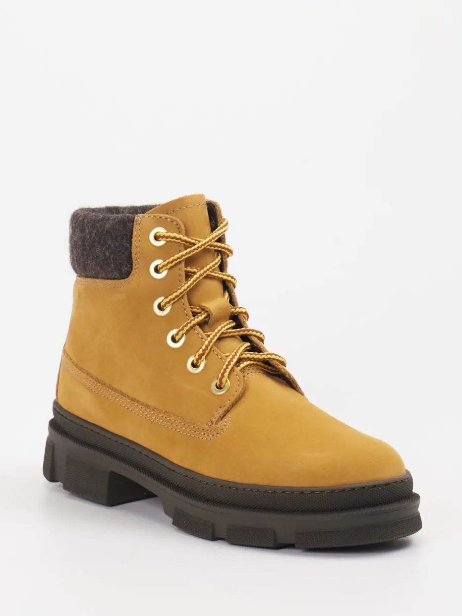 Diese robusten Schnürboots verbinden honigfarbenes Nubukleder mit Outdoor-Funktionalität und modernen Workwear-Akzenten. Komfort und Stil – ideal für kühle Herbsttage.
