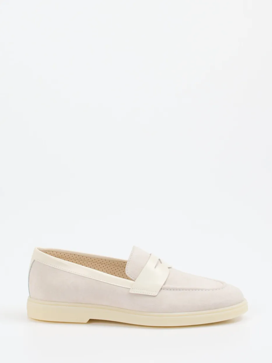 Der Damen-Loafer vereint samtig angeschliffenes Veloursleder mit glattem Lederbesatz in einem Ton-in-Ton-Look – stilvoll und komfortorientiert zugleich.