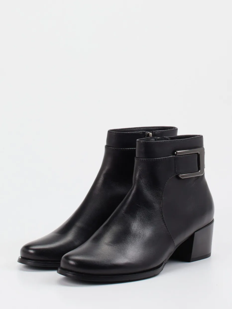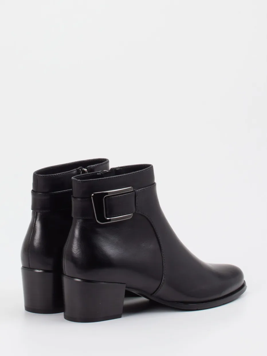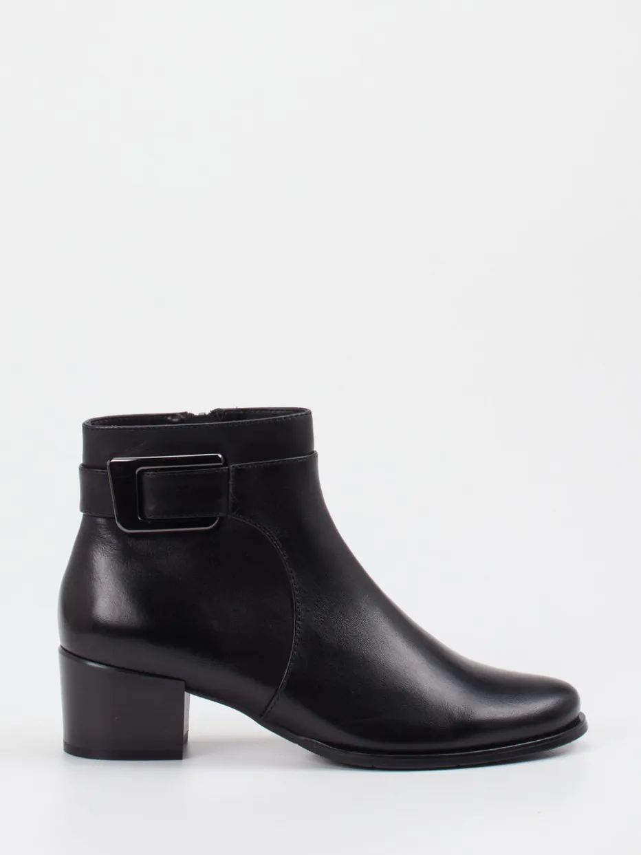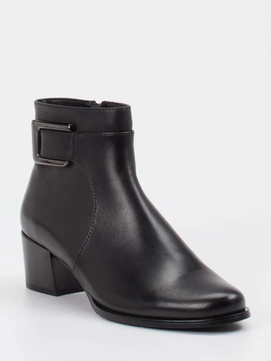 Eleganz trifft Funktionalität.Die Damen-Stiefelette von Ralph Harrison präsentiert sich als stilvoller Begleiter für Herbst und Winter. Mit ihrem glanzvollen Lammleder in tiefem Schwarz, dem seitlichen Reißverschluss und dekorativem Riemen mit Dunkelsilberschnalle überzeugt sie durch eine reduzierte, moderne Silhouette. Der 4,5 cm hohe Blockabsatz sorgt für sicheren Stand, während die rutschhemmende Gummisohle zusätzliche Alltagstauglichkeit bietet. Dank klarer Formgebung und edler Ton-in-Ton-Verarbeitung passt das Modell ideal zu klassischen oder minimalistischen Looks – ob im Büro oder unterwegs. Ein zeitloses Design mit komfortabler Raffinesse, das puristische Qualität stilvoll verkörpert.