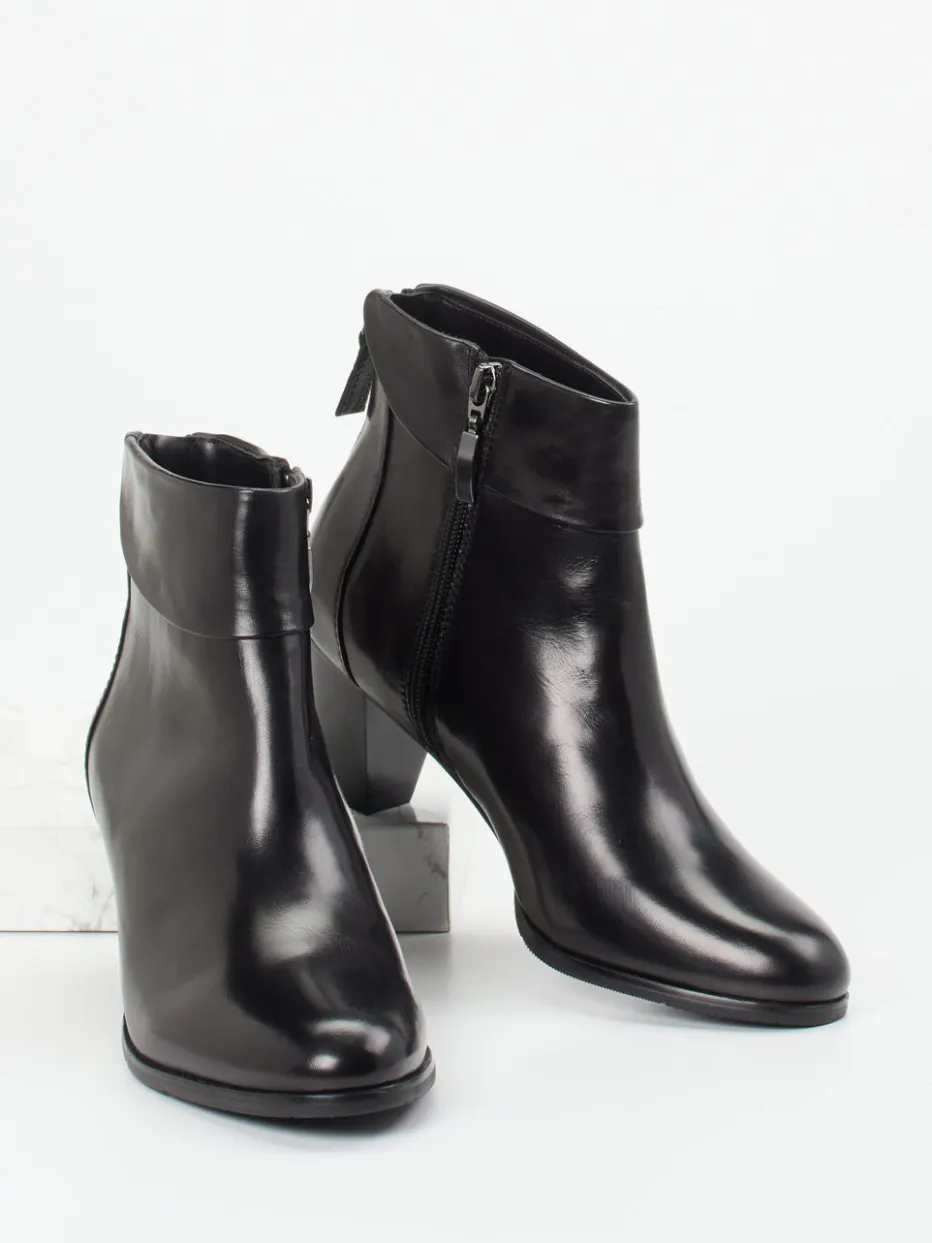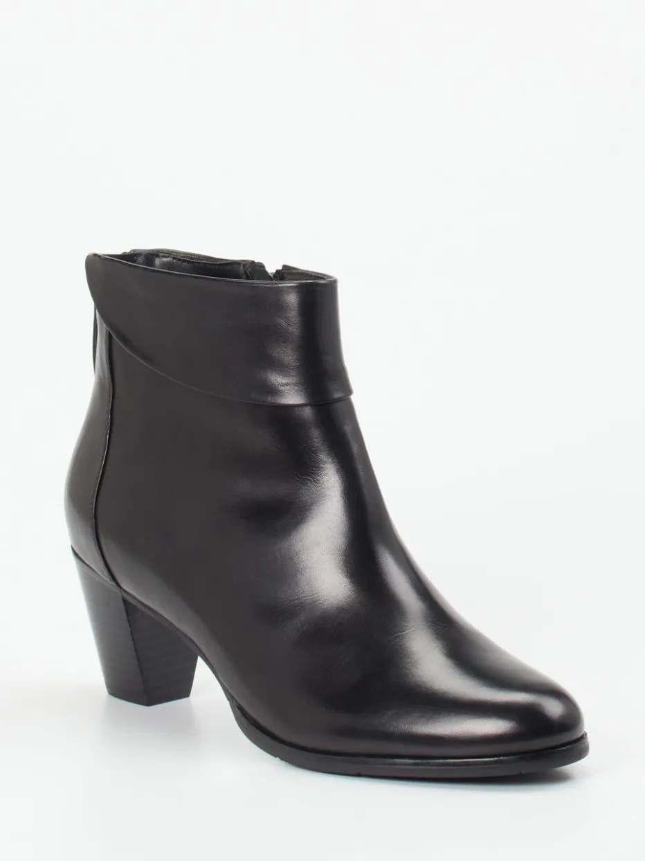 Ralph Harrison präsentiert mit dieser Damen-Stiefelette ein stilvolles Modell für urbane Looks. Kalbleder mit feinem Glanz trägt diese Ankle Boot in klassisch-taillierter Form. Das schwarze, unifarbene Design mit einem umgestülpten Lätzchen und beidseitigen Reißverschlüssen kombiniert Funktionalität und Ästhetik. Der konisch geformte Blockabsatz sowie die strukturierte Gummisohle unterstützen einen komfortablen Gang durch die kühle Jahreszeit. Innen überzeugt wärmendes Microfaserfutter. Reduziert und hochwertig – im Geist von „Quiet Luxury“ und „Essential Footwear“. Ein verlässlicher Favorit mit zurückhaltender Raffinesse von Ralph Harrison.
