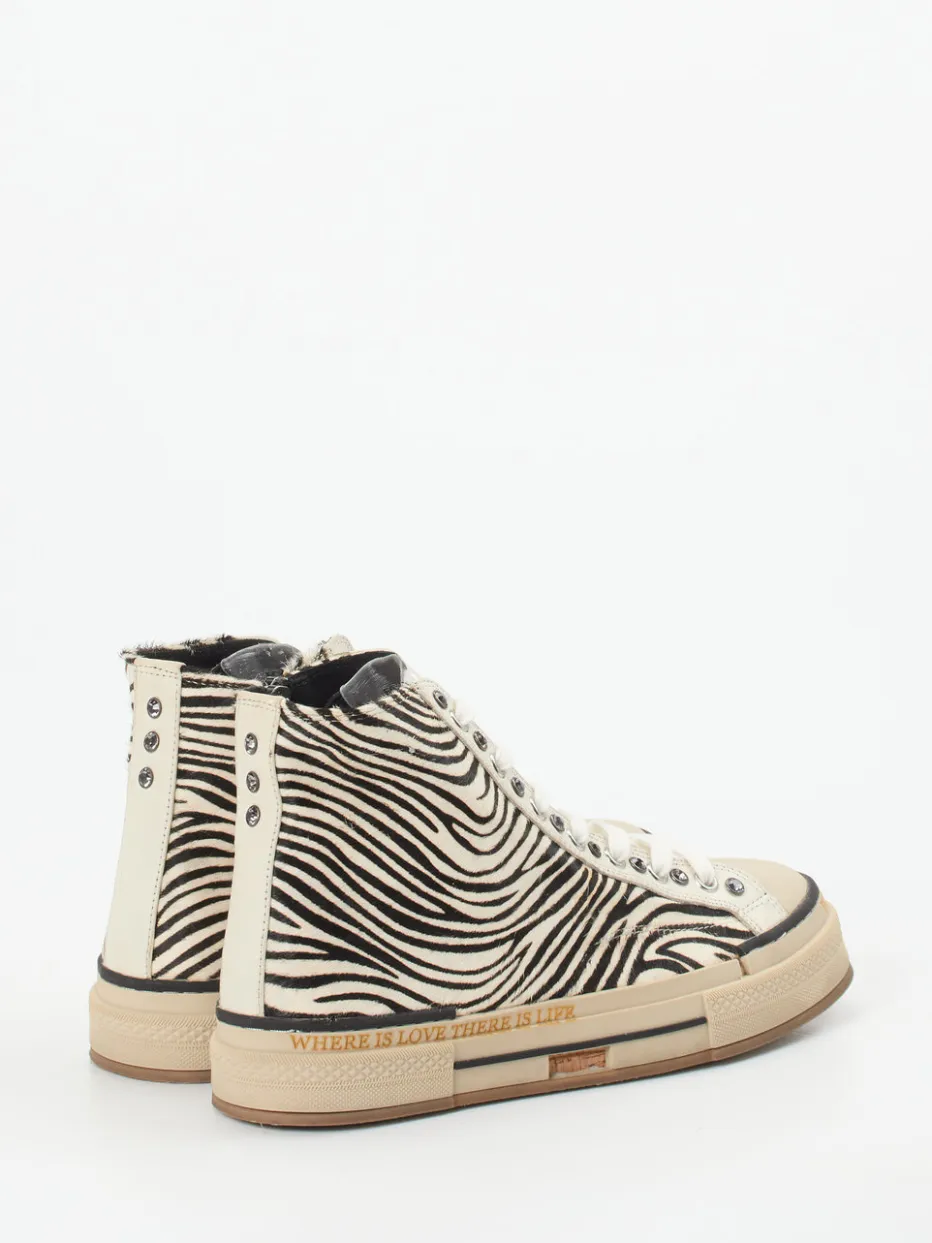 Das Modell trifft mit seinem auffälligen Fellimitat im Zebra-Design einen der stärksten Trends der Saison. Die hochgeschlossene Silhouette wird ergänzt durch eine silberfarbene Pailletten-Zunge, metallene Ösen sowie einen praktischen Reißverschluss an der Seite. Die wie gewohnt mehrlagige Gummisohle zeigt sich mit inspiriertem Schriftzug – ein typisches Markenzeichen. Ideal für expressive Streetstyle-Outfits und starke Alltags-Looks. Kombiniert mit Skinny Jeans und Oversize-Hoodie entsteht ein souverän geladener Fashion-Auftritt.