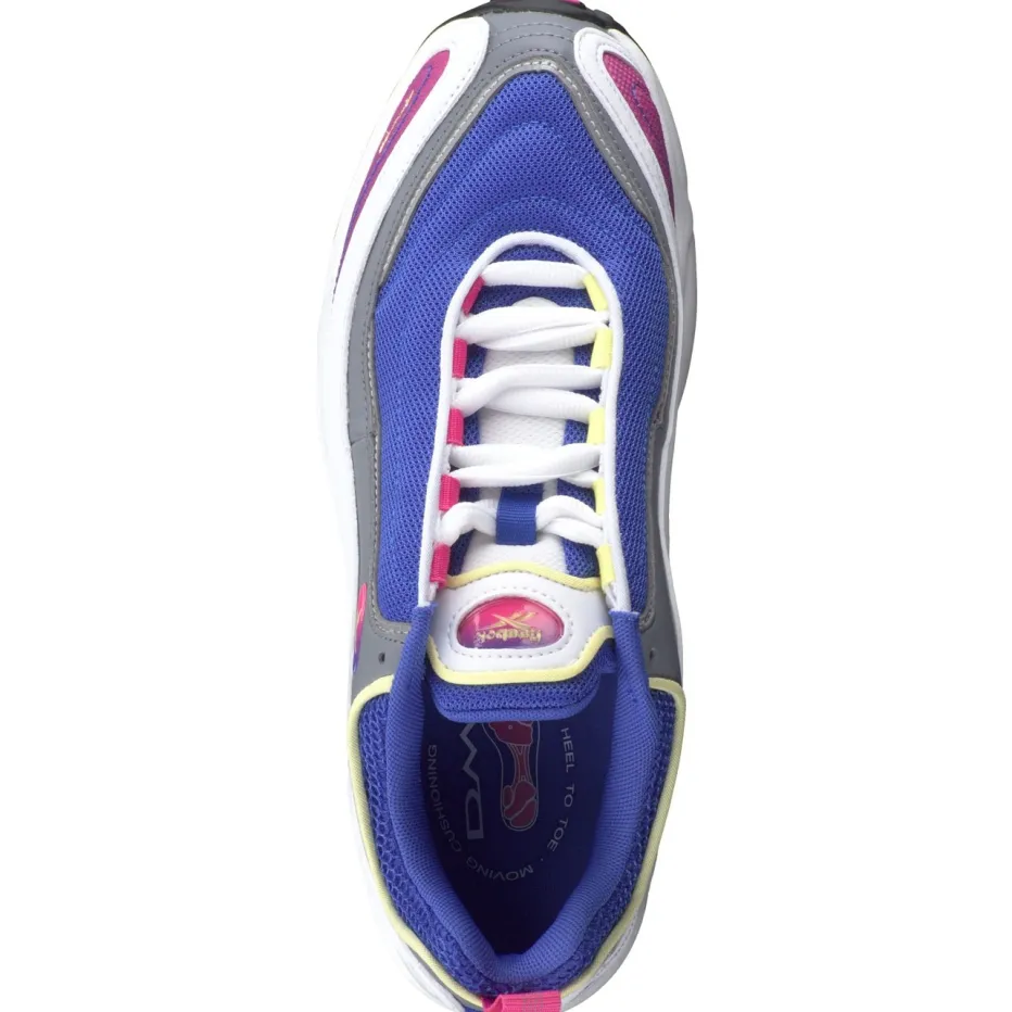 Ob City-Ausflug oder urbaner Freizeit-Look – das atmungsaktive Mesh in kobaltblauer Optik sorgt für Leichtigkeit, ergänzt durch Synthetikleder-Overlays mit reflektierenden Elementen. Ein weißes Schnürsystem, pinke Akzente und die dynamische Silhouette betonen den expressiven Y2K-Charakter. Die farblich abgestimmte Gummisohle mit DMX-Dämpfung unterstreicht den Retro-Charme und bietet gleichzeitig optimalen Grip. Perfekt kombinierbar mit Jogpants oder Oversized-Hoodie.