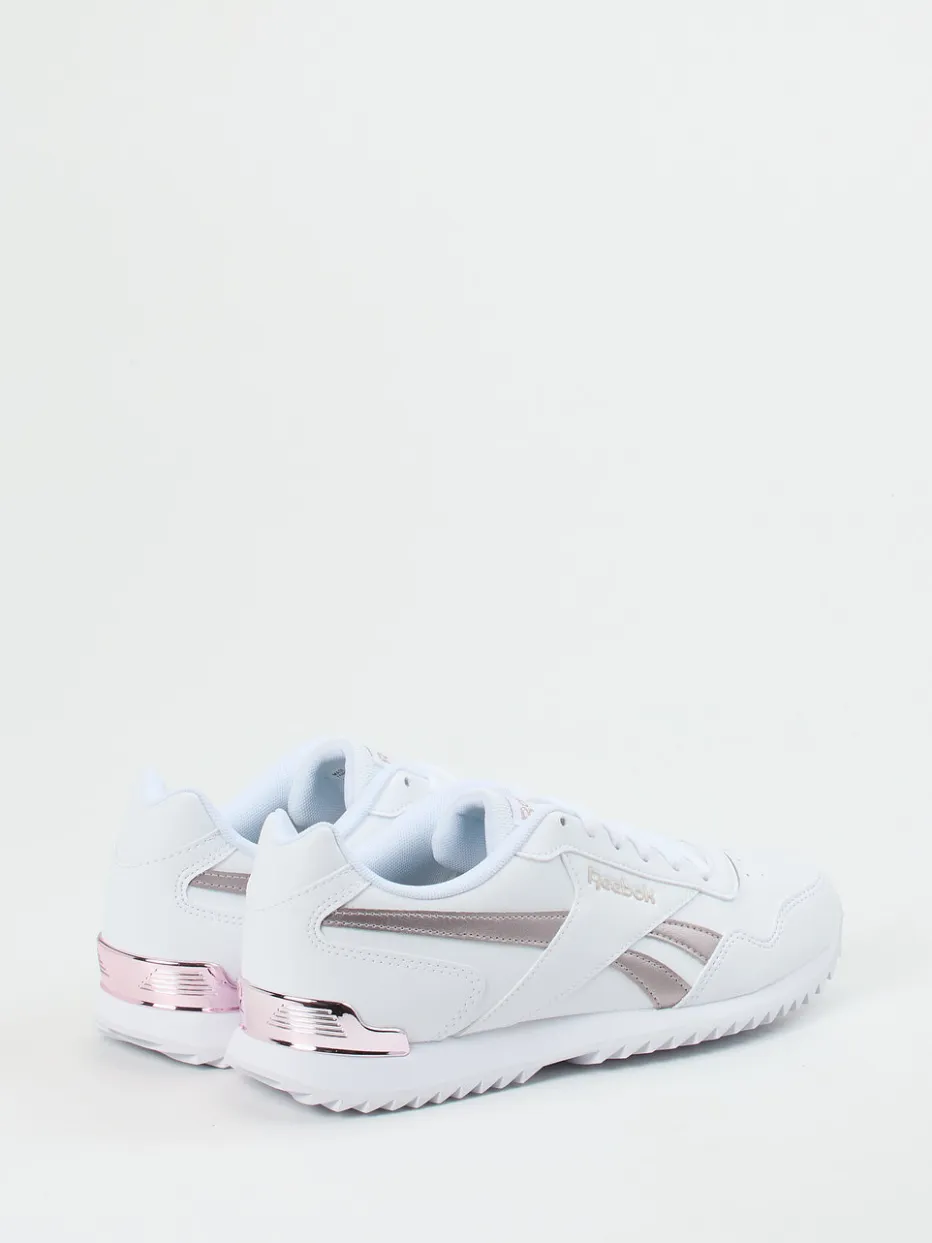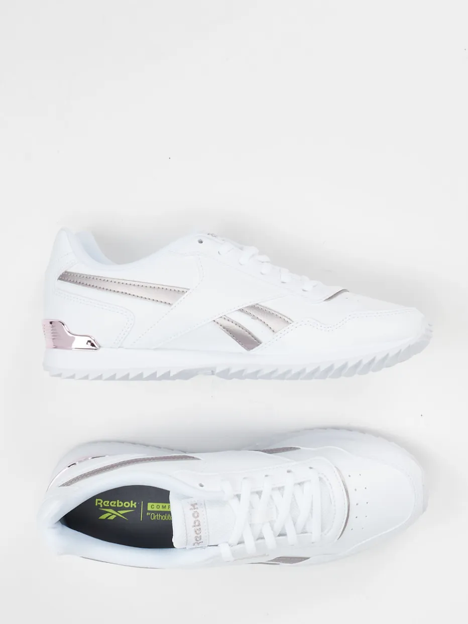Streetstyle trifft Komfort.Der Reebok Retro-Sneaker für Damen bringt Vintage-Flair und modernen Komfort in Einklang. Ideal für Freizeitmomente, bei denen Stil und Bequemlichkeit gefragt sind. Gefertigt aus weißem Synthetikleder mit matter Oberfläche überzeugt der Schuh mit kupferfarben schimmernden Metallic-Details an der Ferse und Ton-in-Ton-Nähten. Die klassische, flache Silhouette mit gepolstertem Einstieg und Ortholite-Innensohle sorgt für ein angenehm leichtes Tragegefühl. Das wellenartige Profil der Gummisohle sowie das seitliche Logo unterstreichen den sportlich-eleganten Look. Perfekt kombinierbar mit Casualwear in neutralen oder pastelligen Tönen. Ein Style-Must-have für trendorientierte Retro-Fans mit Sinn für Alltagstauglichkeit.