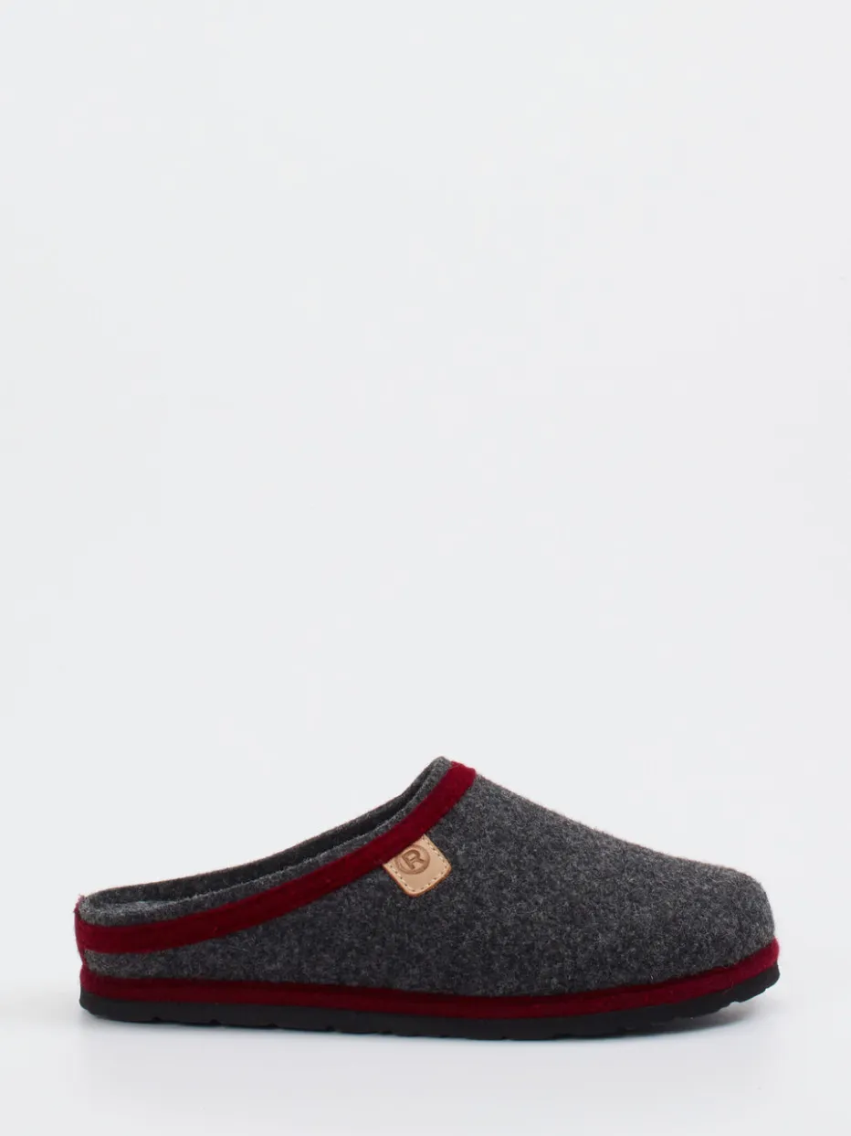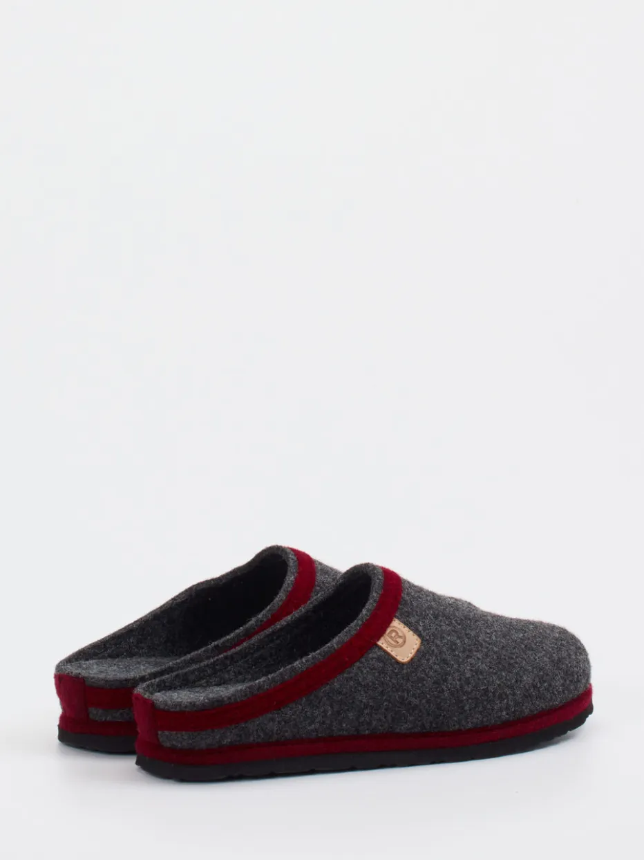 Ob nach einem langen Tag oder für entspannte Stunden am Wochenende – die in Anthrazit gehaltenen Pantoffeln aus hochwertigem Wollfilz mit filziger Haptik bieten ein ausgeglichenes Fußklima. Die dunkelrote Einfassung setzt gezielte Farbakzente, während die offene Schlupfform in Clog-Silhouette bequemes Hineinschlüpfen ermöglicht. Das geformte Fußbett unterstützt den Halt, ergänzt durch eine rutschhemmende Gummisohle. Inspiriert von Alpine Heritage und dem Trend zu Natural Comfort, passt das Modell ideal zur loungebetonten Winter-Garderobe.
