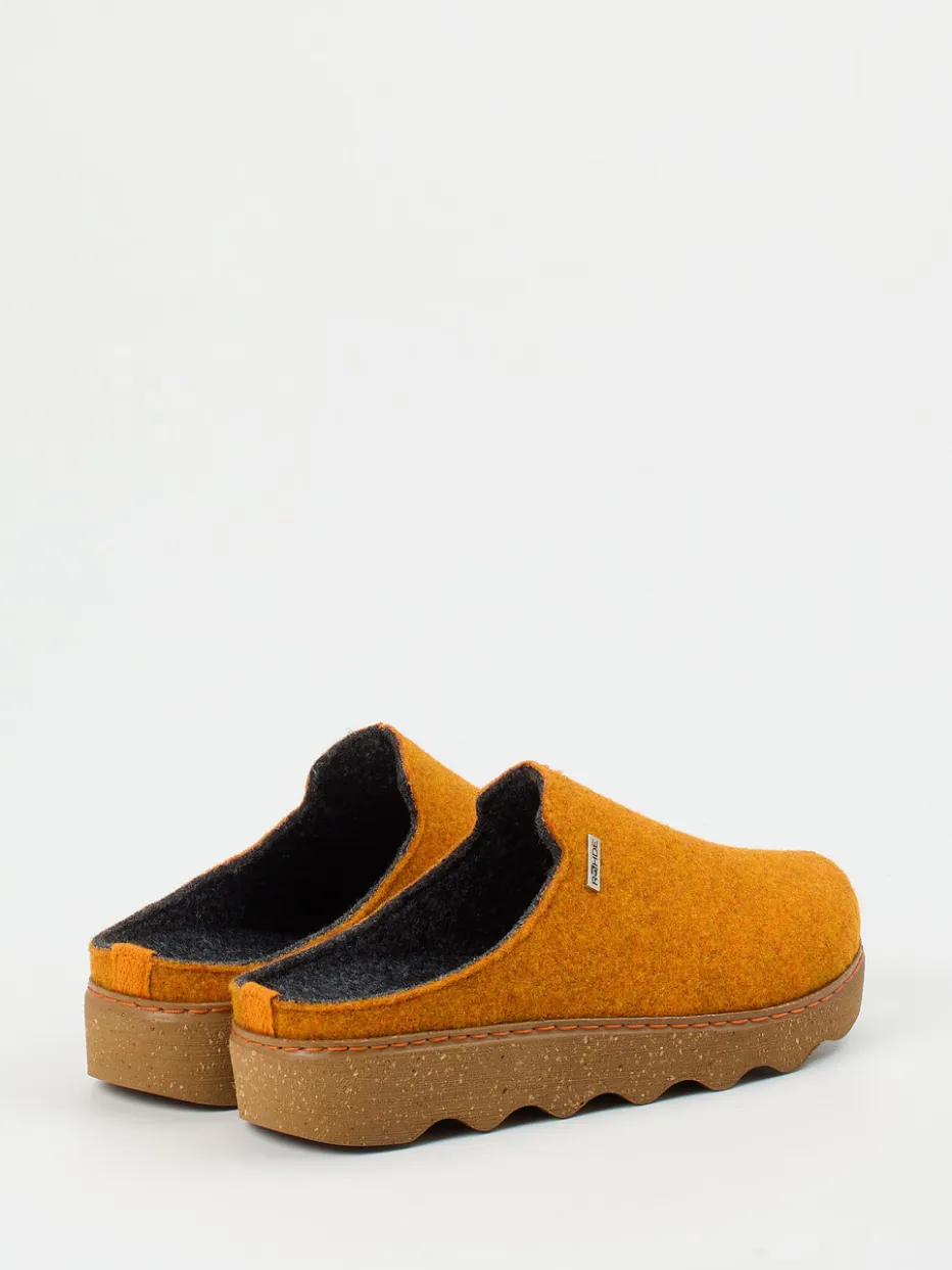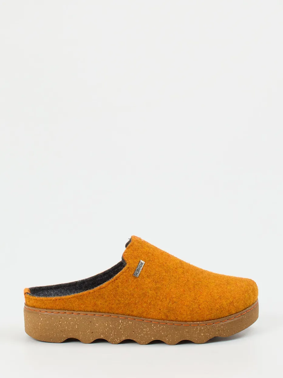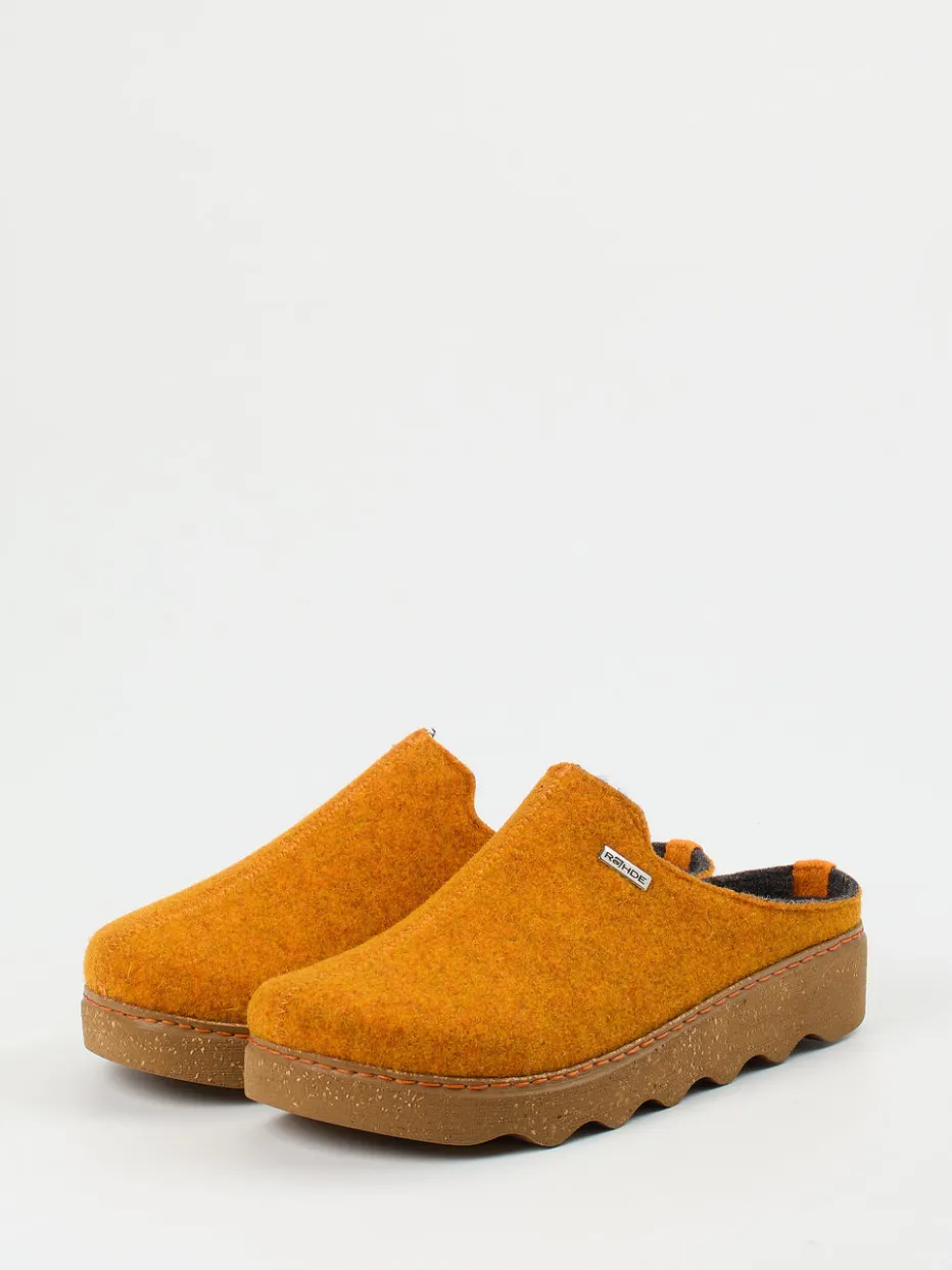 Dieser Filzpantoffel von Rohde kombiniert ergonomischen Komfort mit einem modernen Loungewear-Stil in warmer Farbgebung und filziger Haptik.