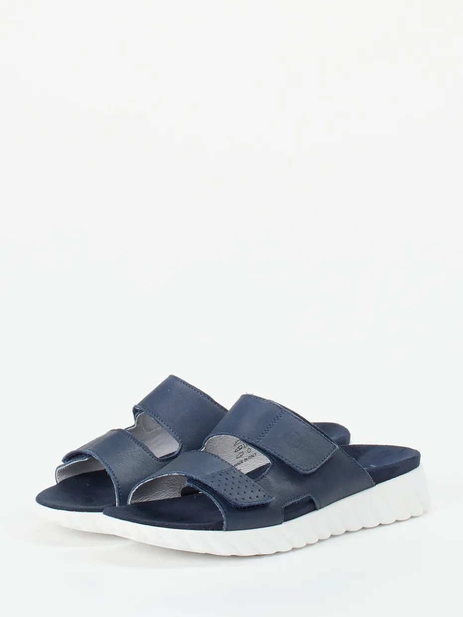Sportiver Komfort für warme Tage.Die Marke Rohde präsentiert mit dieser Komfortpantolette ein lässiges Herrenmodell für Alltag, Freizeit und Zuhause. Die offene Konstruktion mit breiten, verstellbaren Klettverschlüssen sorgt für Flexibilität und Stabilität. Gefertigt aus samtig angeschliffenem Nubukleder in Marineblau, kombiniert mit weißem Innenfutter aus Leder, bietet sie eine stilvolle Komposition. Eine profilierte Gummisohle mit ergonomischer Form unterstützt bequemes Gehen – rutschhemmend dank Wellenprofil. Dezente Prägungen und Ton-in-Ton-Nähte unterstreichen den minimalistischen Look mit Streetwear-Einfluss. Harmoniert ideal mit leichten Stoffhosen und T-Shirts. Ein verlässlicher Begleiter mit markentypischem Komfortanspruch – alltagstauglich und trendgerecht.
